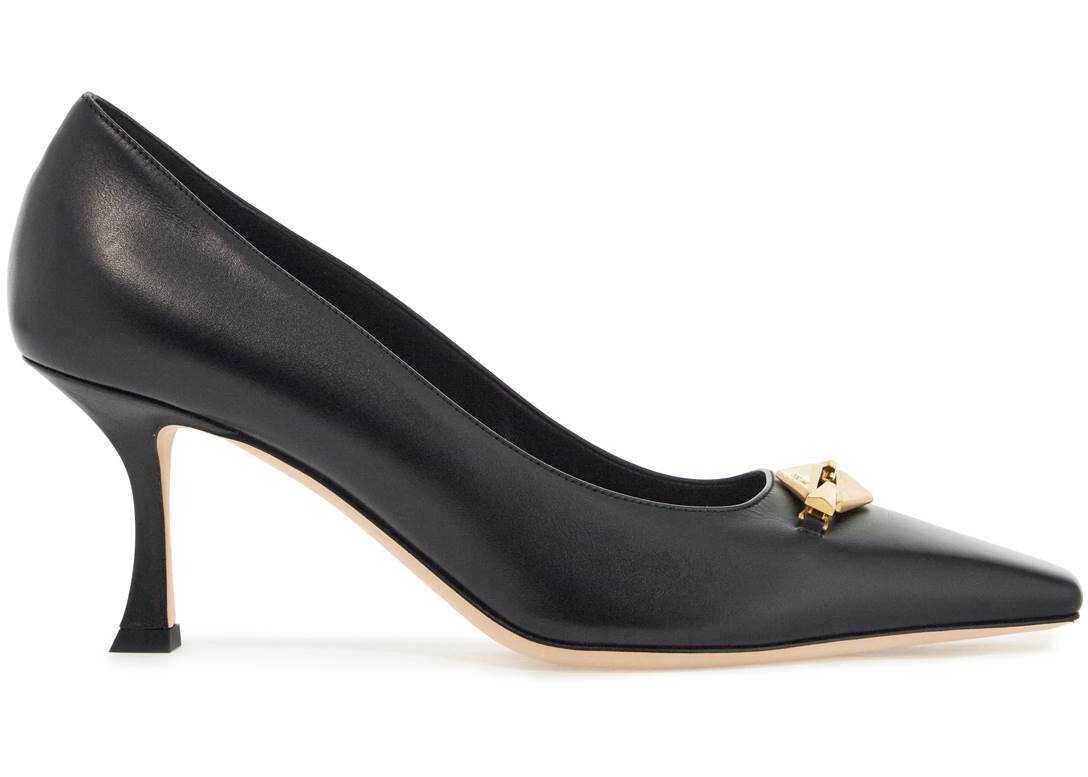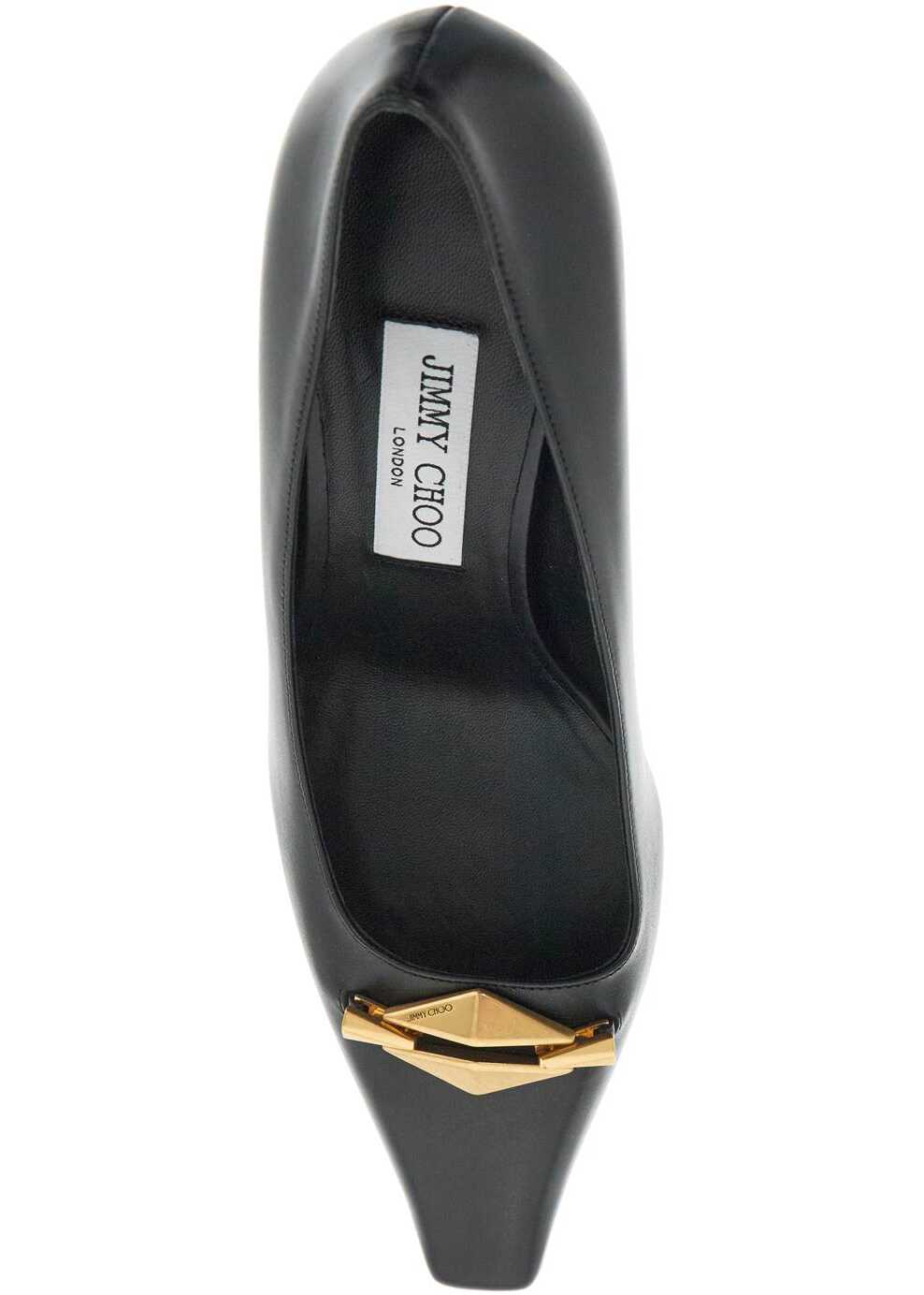 The Ryker Dé colleté by Jimmy Choo is made of smooth leather, with a tapered silhouette featuring a square toe and covered curved heel. The design is enhanced by the golden metal Diamond detail and completed with a leather interior and a leather sole with rubber inlay.