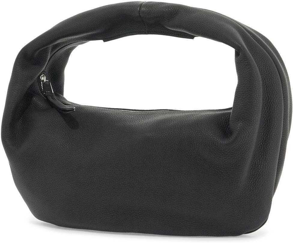 The medium Olivia hobo bag by Khaite is made of soft hammered calf leather with a unique half-moon shape. It features a top zip closure with a leather pull tab, laminated logo on the front, and suede leather interior. The metallic accessories have a silver finish.
