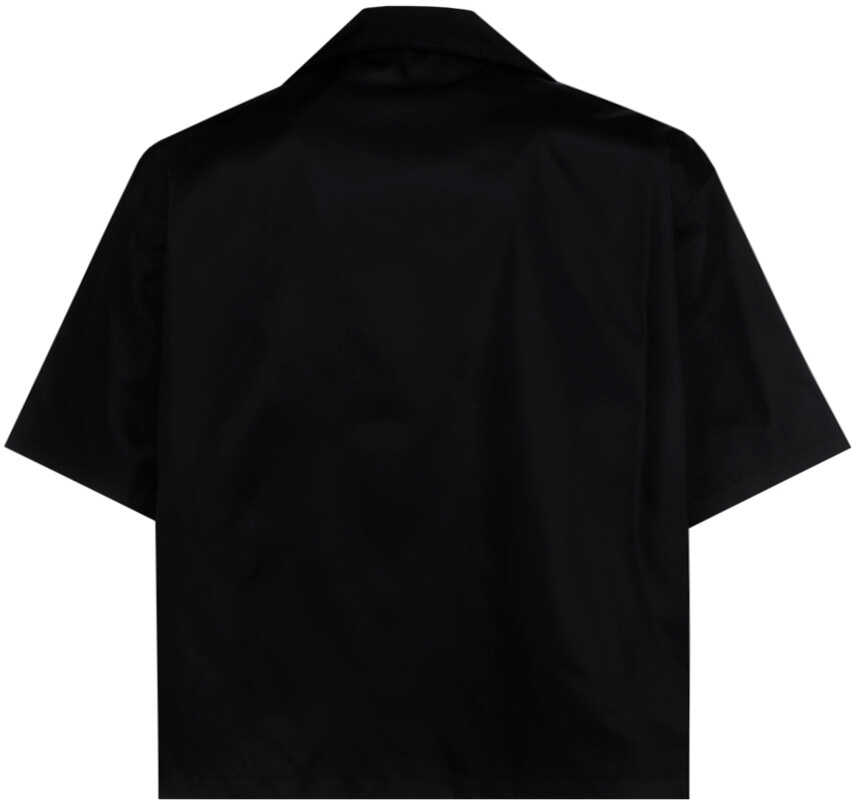 Nylon Shirt by Prada, classic collar, snap button closure, two welt zip pockets, front pocket with triangle logo plaque, short sleeves.