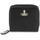 This compact wallet by Vivienne Westwood is made of hammered leather with the iconic platinum-finished metal Orb applied on the front. It features a snap button closure, two compartments for bills, eight credit card slots, two slip pockets, and a zippered back pocket for coins.