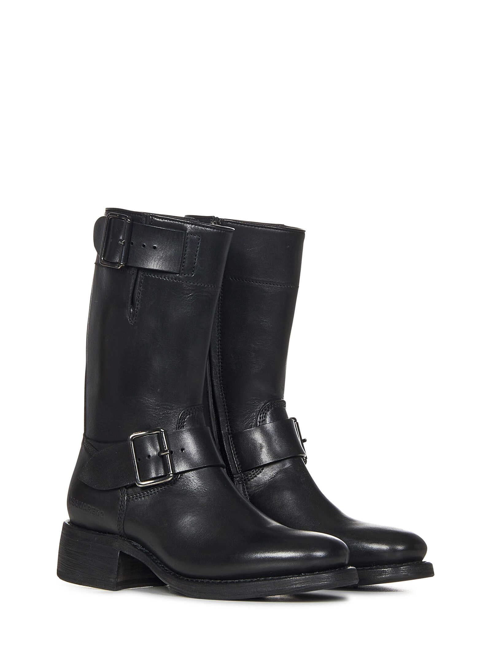 Step out in style with these chic Dsquared2 Boots in classic black. Crafted from 100% leather, these ankle boots feature decorative buckles and a low wide heel for both style and comfort. Perfect for any fashion-forward woman, these boots are a must-have addition to your wardrobe. Elevate any outfit with these versatile and stylish boots that are sure to turn heads wherever you go.