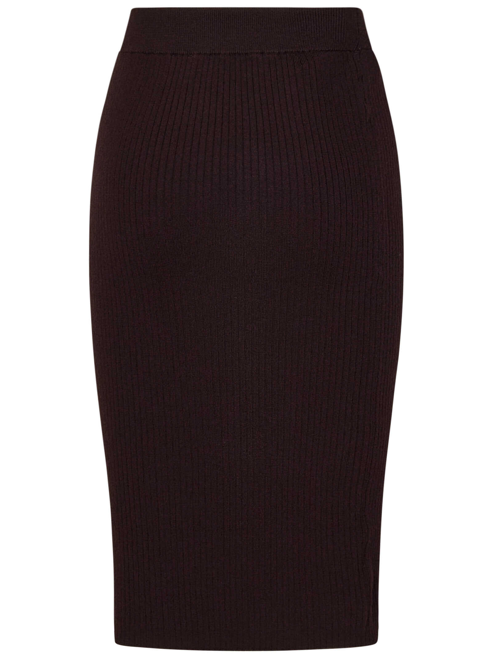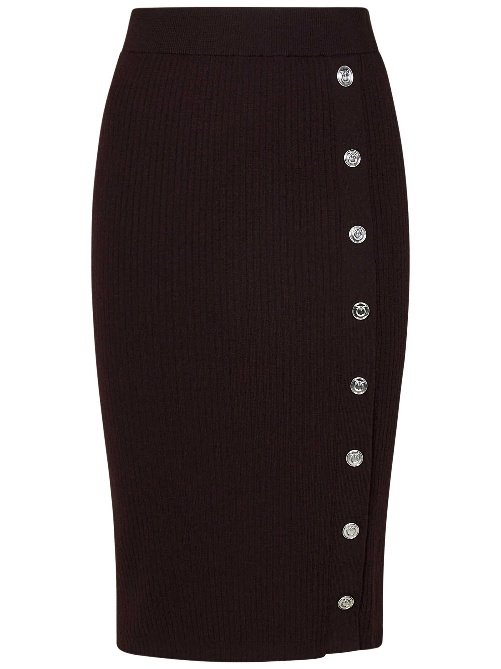 Refrigerazione knee-length skirt in ribbed stretch brown wool with side silver logo buttons.
