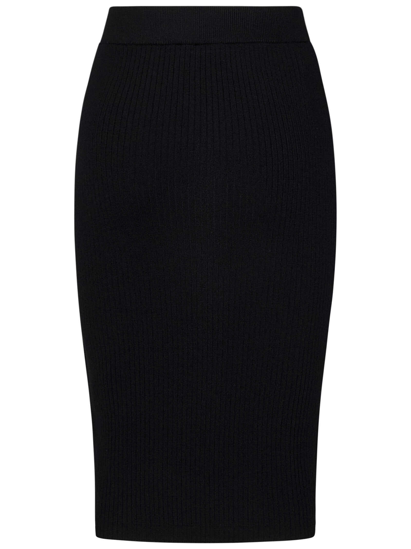 Refrigerazione knee-length skirt in ribbed stretch black wool with side silver logo buttons.