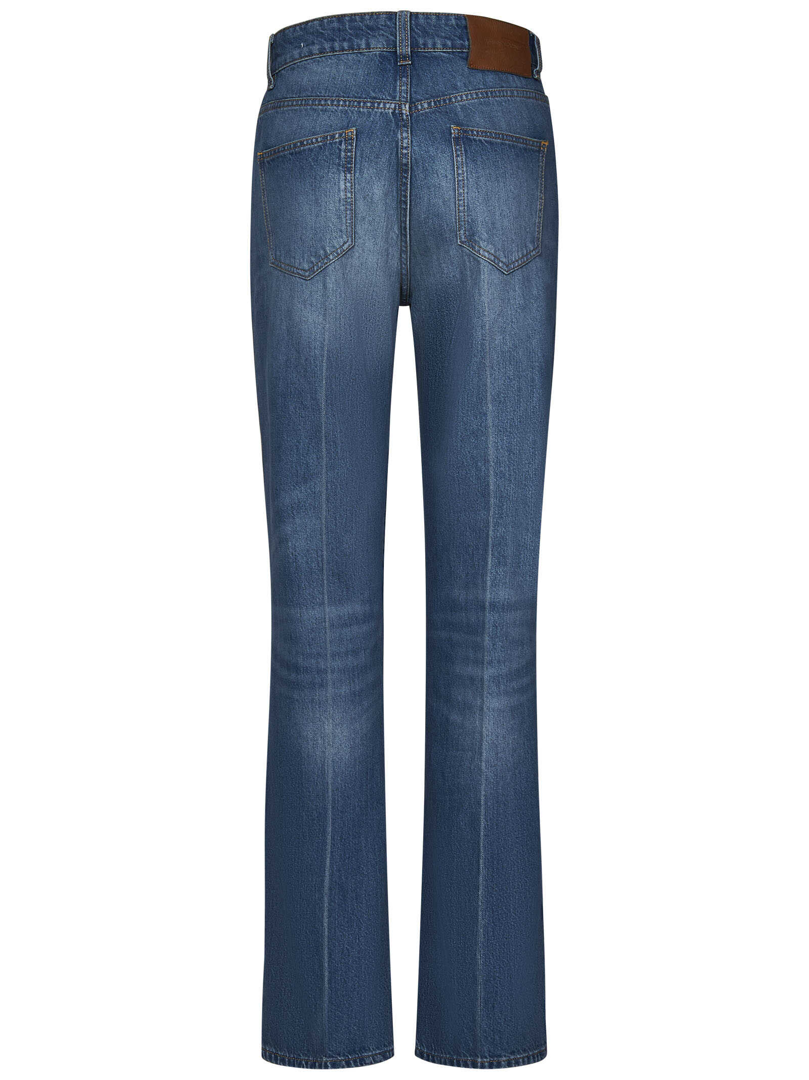 Julia high-waisted relaxed-leg vintage wash blue cotton denim jeans.