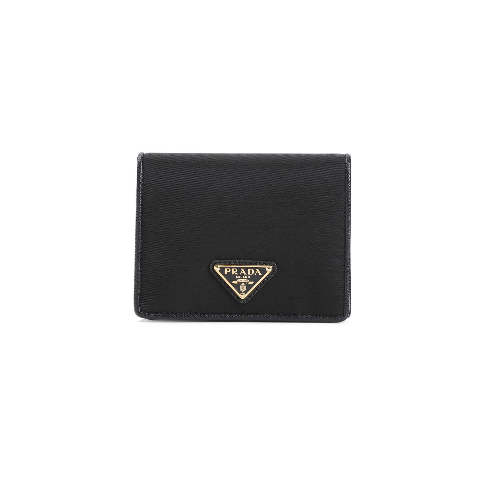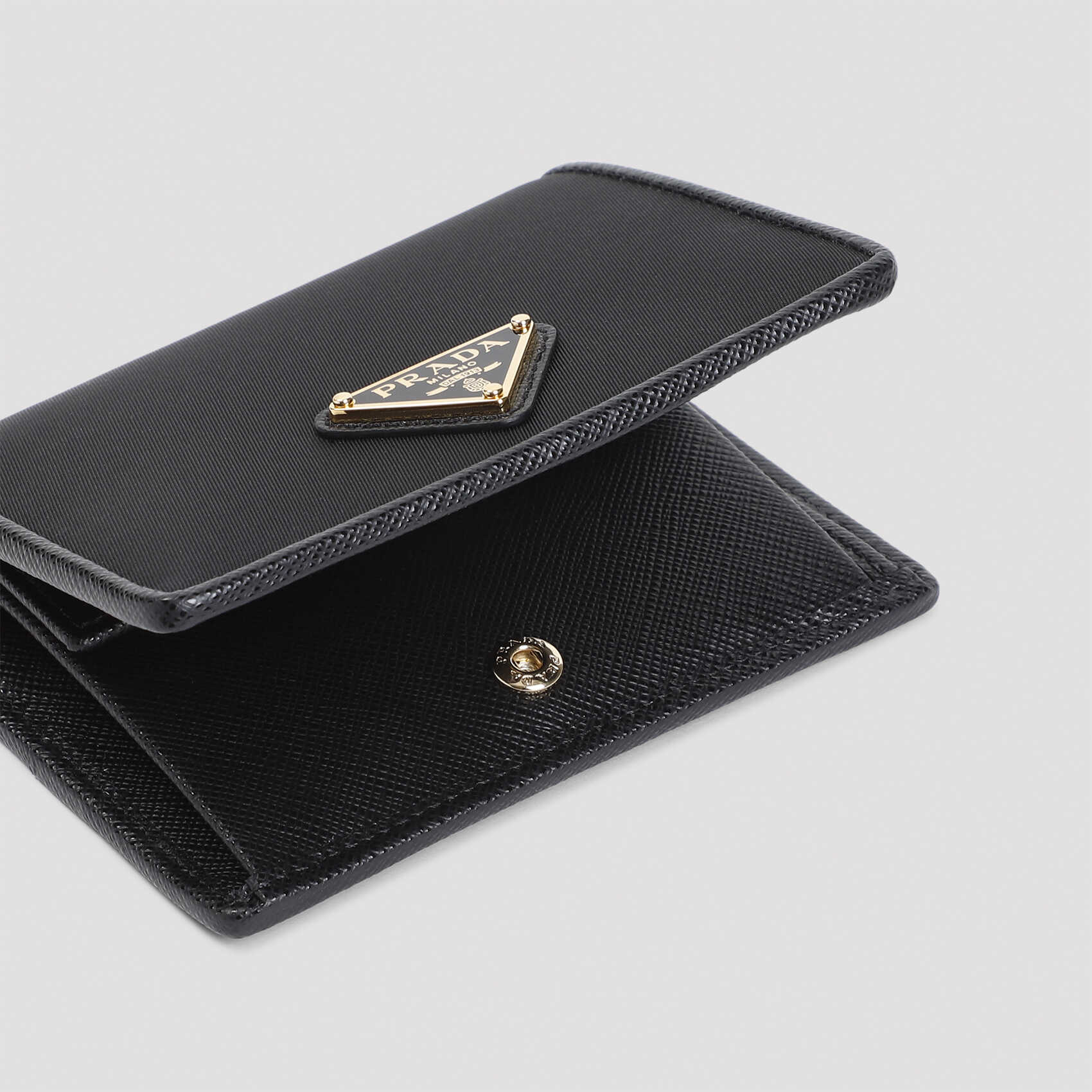 Elevate your style with this chic PRADA wallet. Featuring a sleek black design, this wallet is crafted from a luxurious blend of polyamide and leather. With a compact size of W:11cm H:9cm D:3cm, it is perfect for storing your essentials in style. Make a statement with PRADA!