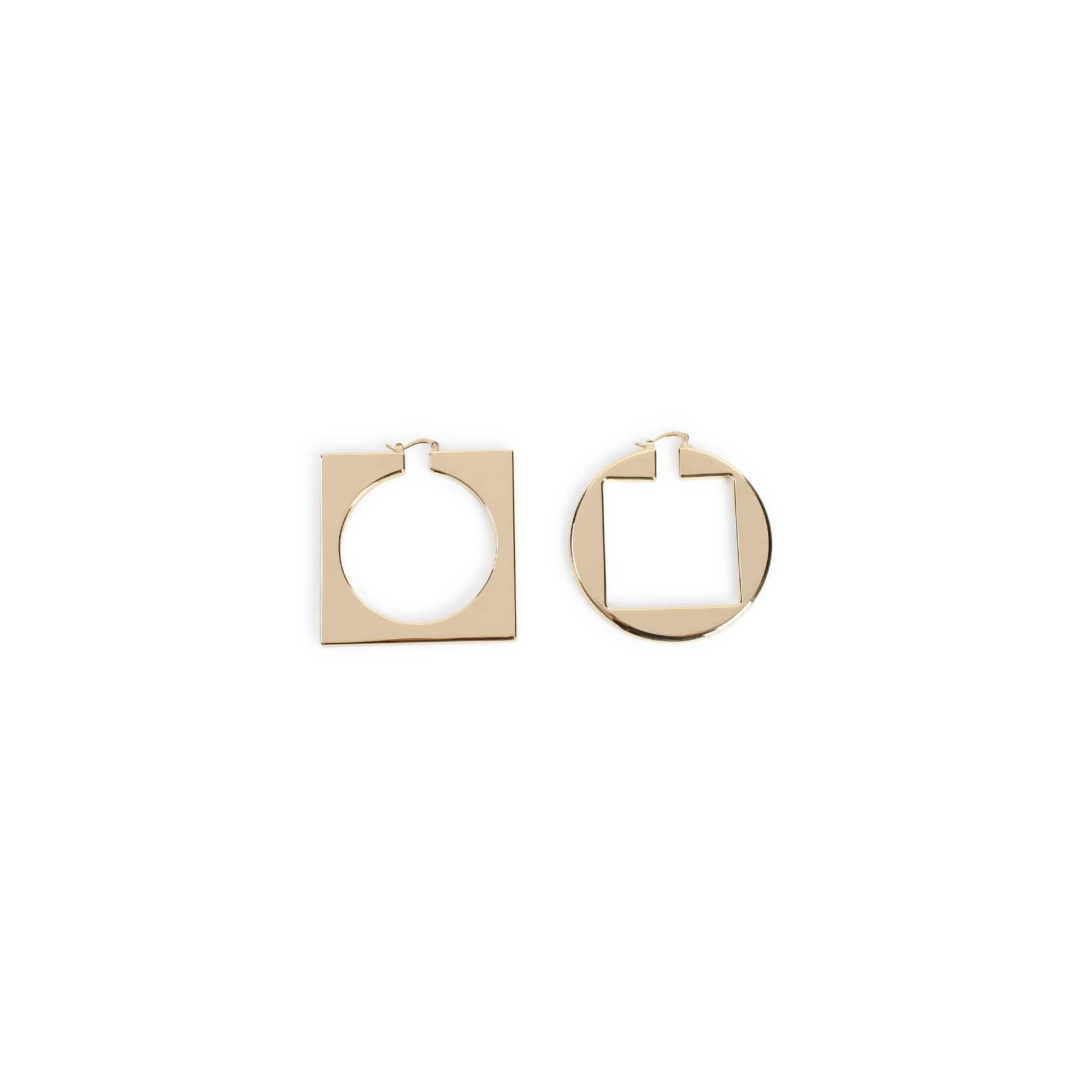 Add a touch of modern elegance to your outfit with these Metallic hoop earrings from JACQUEMUS. Crafted in aluminum and brass, these asymmetric earrings feature flat circular and square shapes with a clasp fastening. Perfect for any occasion, these statement earrings are a must-have for every fashion-forward woman. Elevate your style with JACQUEMUS.