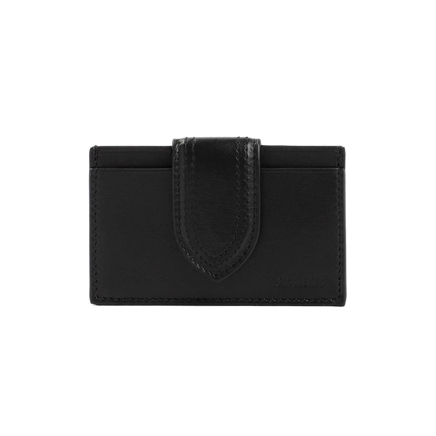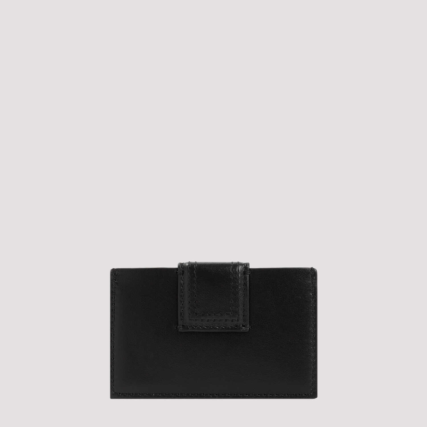 Elevate your style with the JACQUEMUS 233SL122.3000 wallet in sleek black leather. This compact card case features a magnetic flap closure, card slots, and an embossed logo. Crafted from luxurious lamb and cow leather, it is the perfect accessory for the modern man on the go. Stay organized and stylish with this timeless piece. Limited availability, shop now!