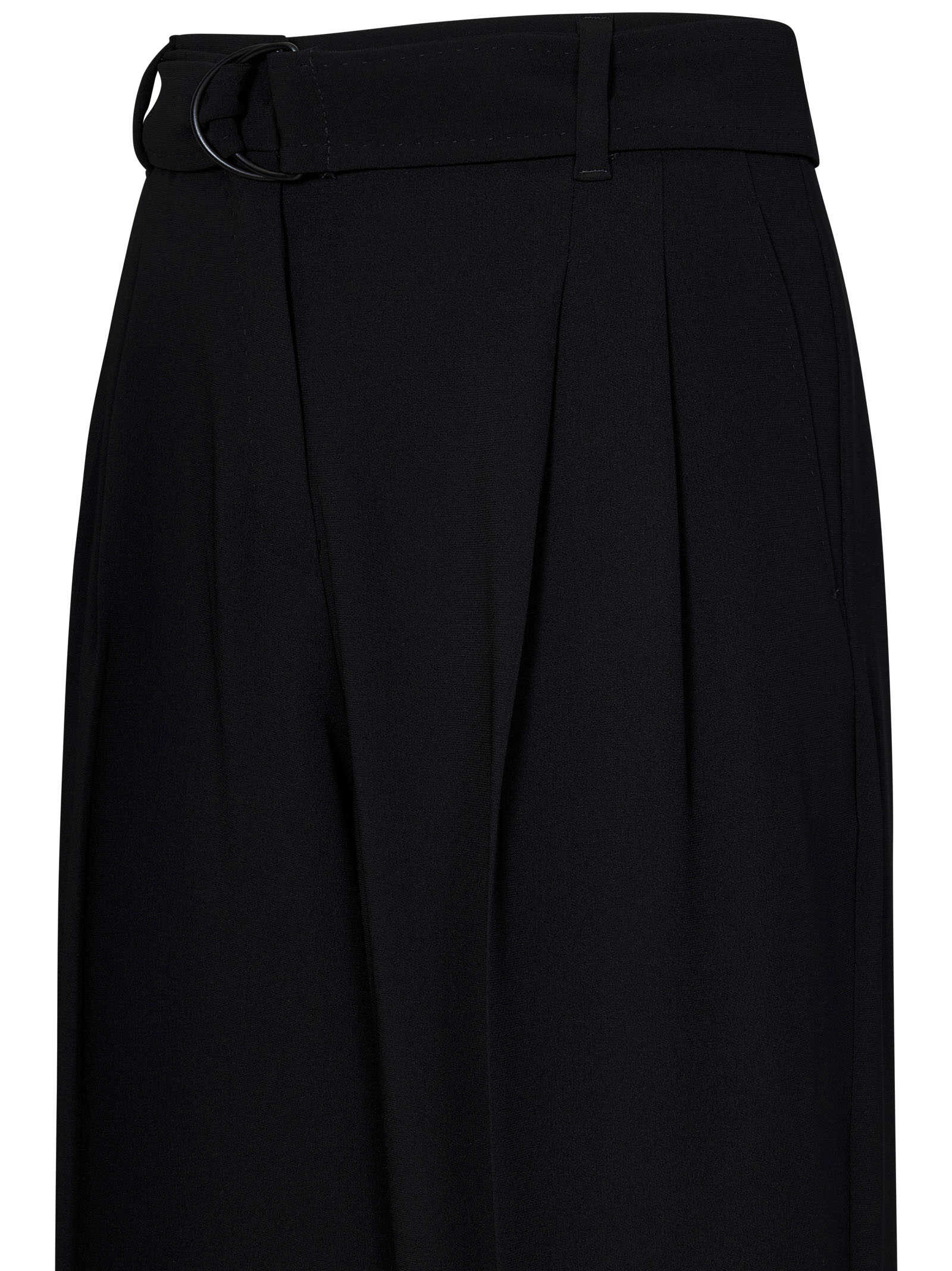 LATINA black heavy cady flowing trousers with double pleat and belt at the waist.