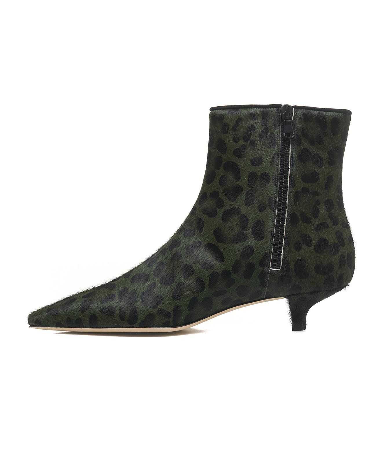 Step out in style with these stunning animal print ankle boots. Crafted from premium leather, they offer a perfect blend of elegance and comfort. The vibrant green color adds a unique touch, making them a must-have for any fashion-forward woman.