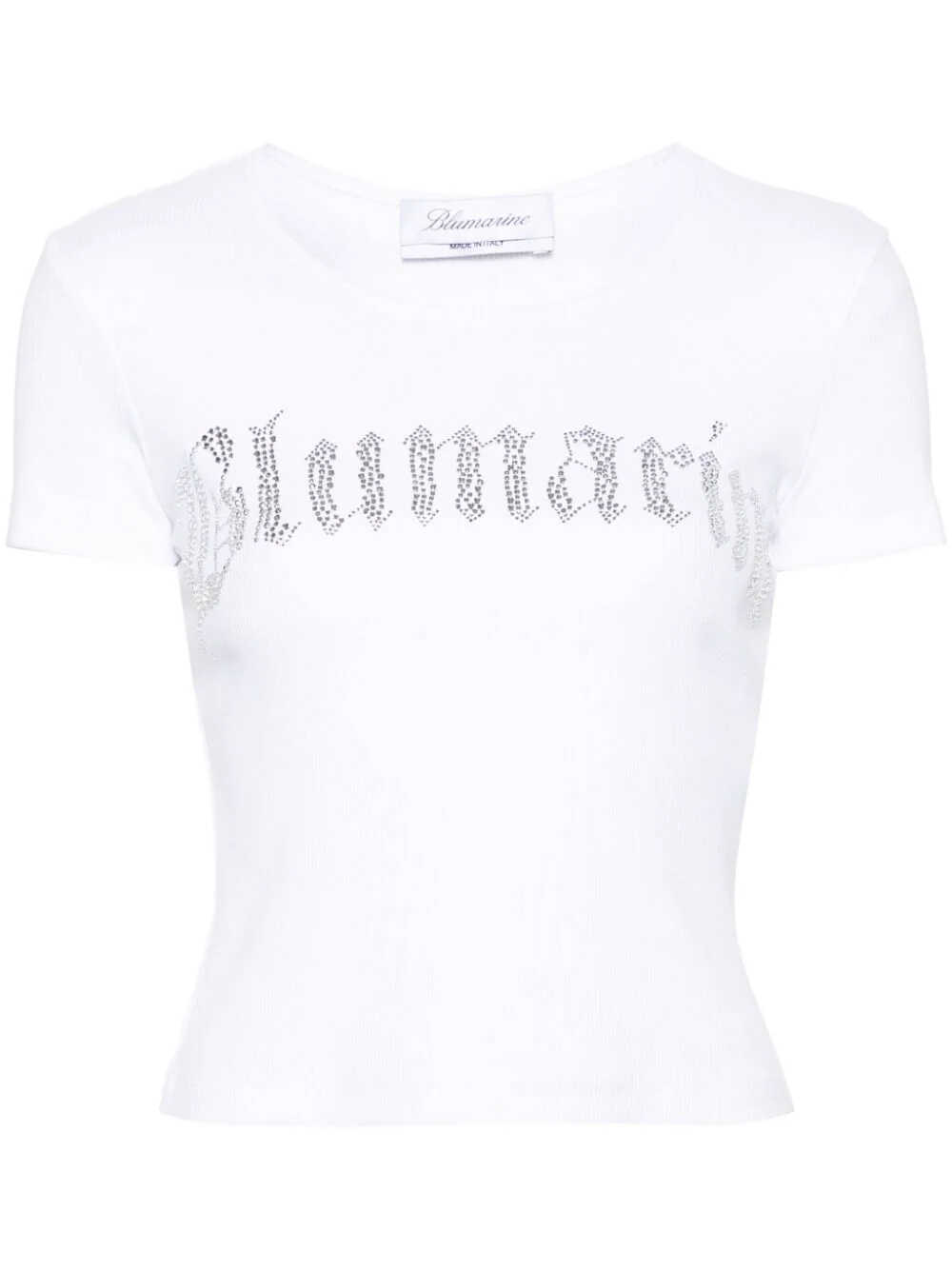 Elevate your casual style with this Black T-shirt from BLUMARINE. Made with a blend of 95% Cotton and 5% Elastane, this T-shirt offers comfort and style in one. Perfect for everyday wear or dressing up for a night out. Add a touch of luxury to your wardrobe with the T-shirt Costina Mc.