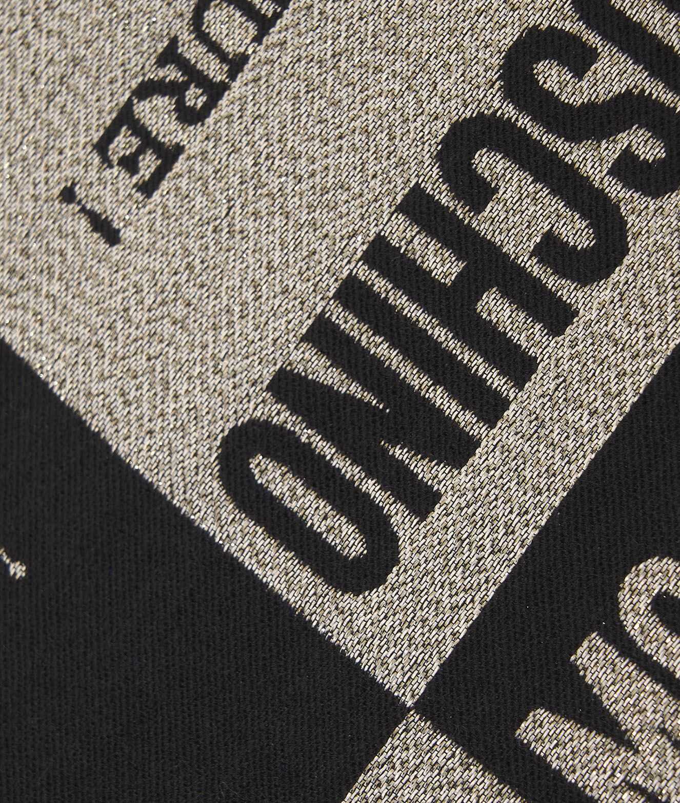 Elevate your style with this stunning black scarf from MOSCHINO. Made with a glitter finish, this scarf is perfect for adding a touch of glamour to any outfit. With a luxurious blend of materials including PAN, CMD, PES, WO, and PA, this scarf is not only fashionable but also comfortable to wear. Dry clean recommended. Add a touch of sophistication to your wardrobe with this must-have accessory. Dimensions: 188 x 78 cm.