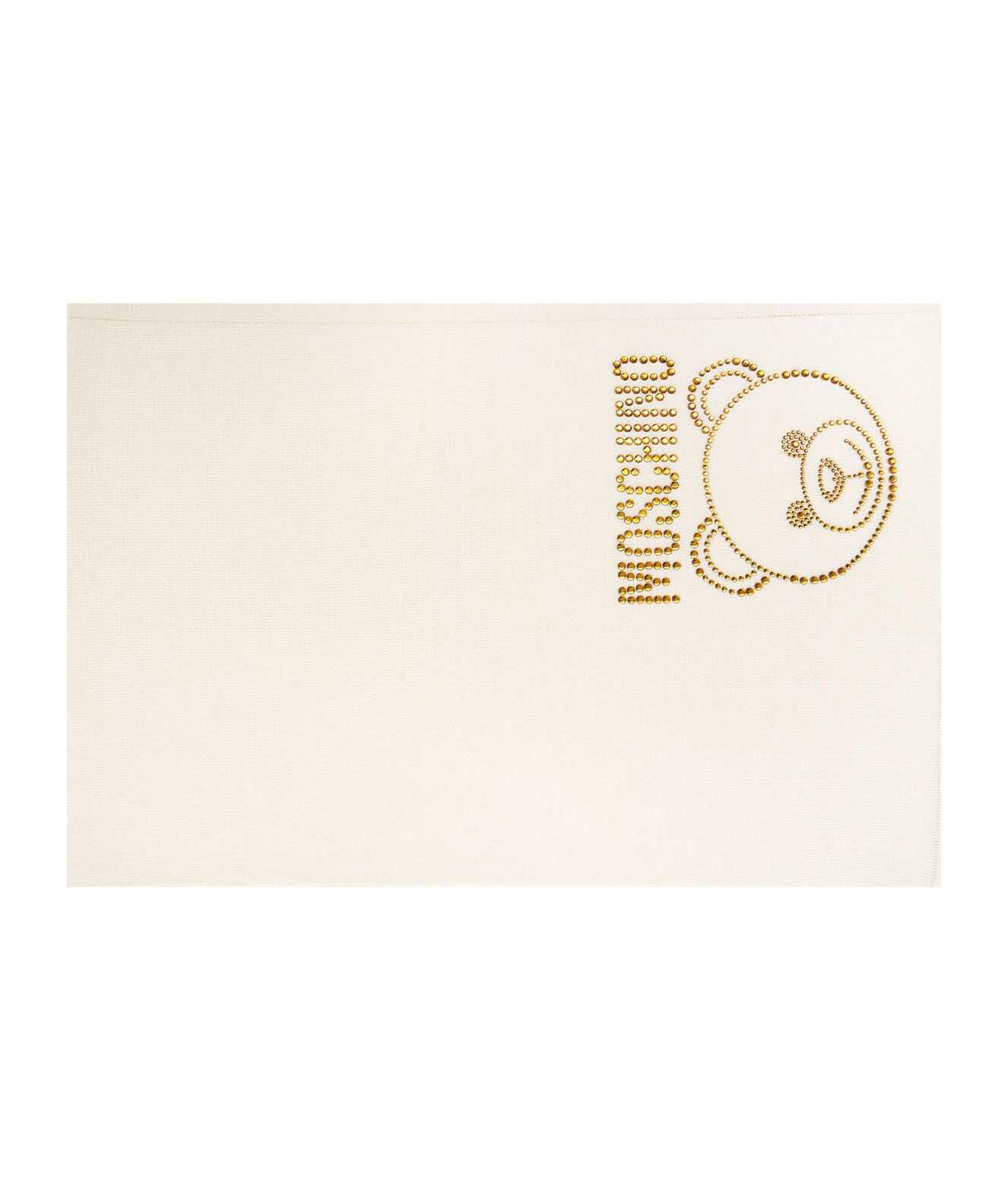 Wrap yourself in luxury with this exquisite white wool scarf from MOSCHINO. Featuring a stunning rhinestone application, this accessory is perfect for adding a touch of glamour to any outfit. Dry clean only. Dimensions: 180 x 30 cm. Elevate your style with this must-have scarf.
