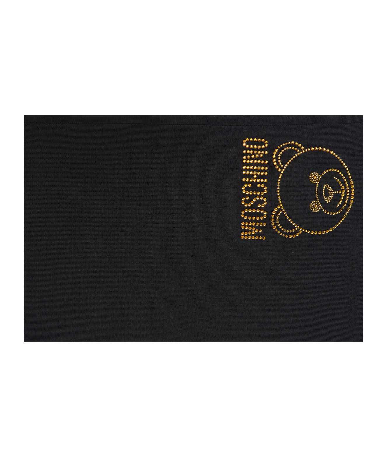 Stay warm and stylish with this luxurious black wool scarf from MOSCHINO. Featuring a stunning rhinestone application, this scarf is the perfect accessory for any outfit. The 100% WO material ensures both quality and comfort. Dry clean only. Upgrade your accessory collection with this must-have piece. Limited availability - get yours now!