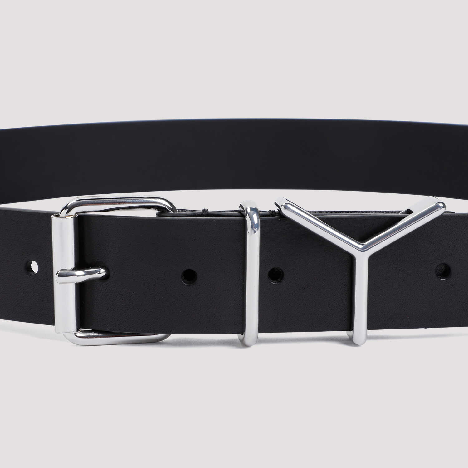 Elevate your style with the Y PROJECT 621BE007.S10 black leather belt. Crafted from 100% calfskin, this adjustable belt features a sleek design with silver-tone hardware, perfect for any outfit. A must-have accessory for every fashionista!