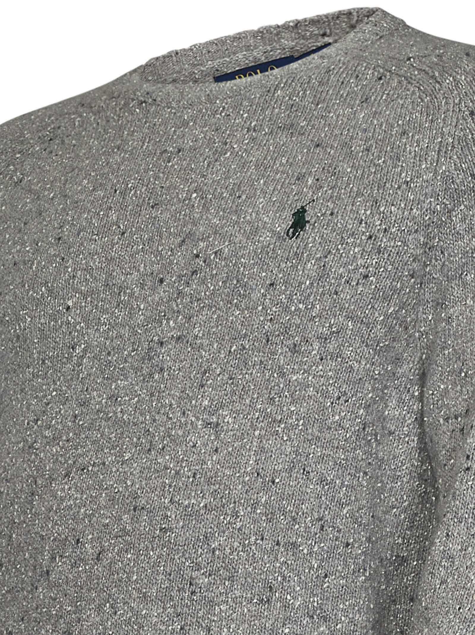 Crewneck grey wool and silk blend melange knit sweater with Pony embroidery.