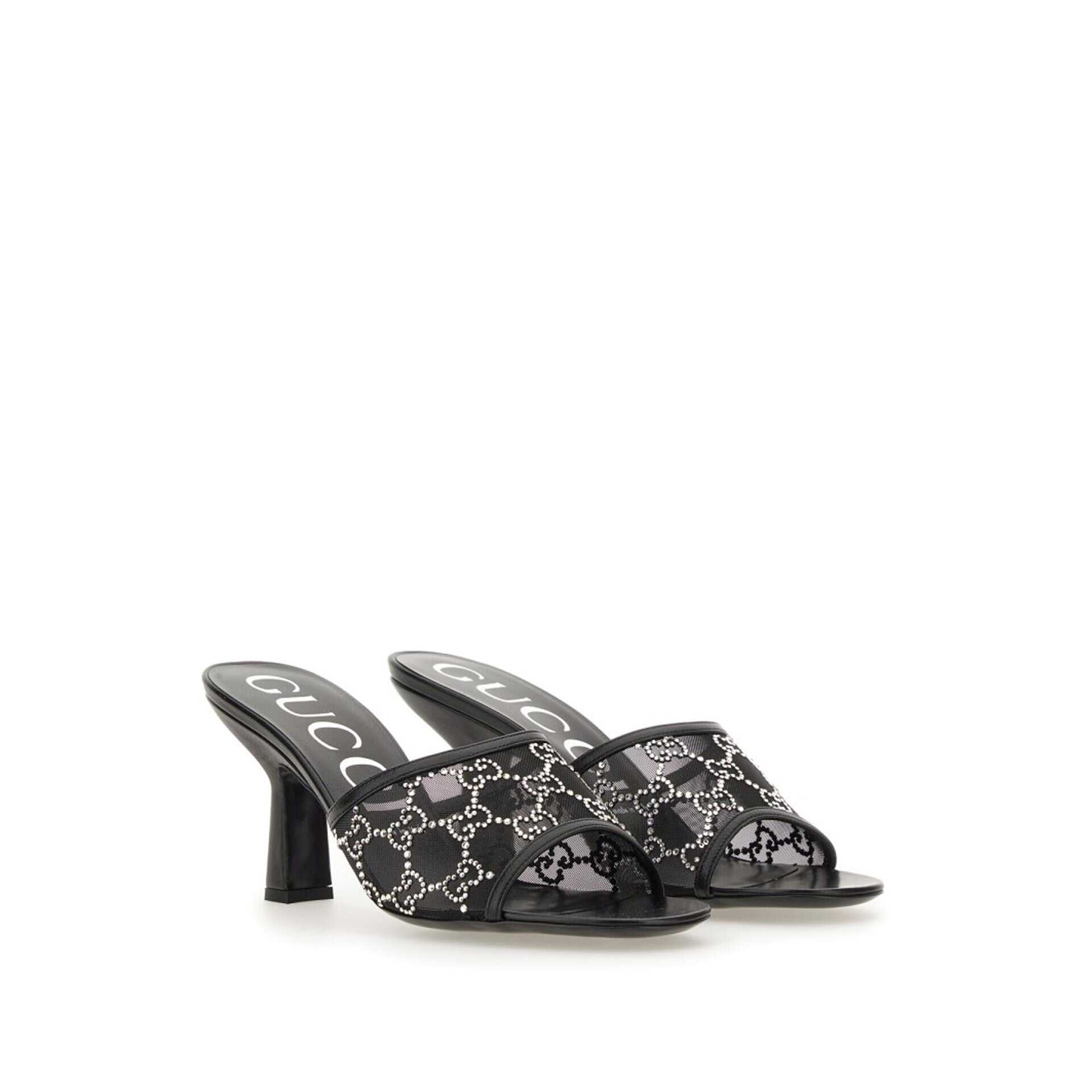 Elevate your style with the Gucci GG Crystals Mules. Crafted in luxurious black polyamide, these slip-ons feature exquisite leather details and a stunning crystal application. Perfect for any occasion, they add a touch of glamour to your wardrobe!
