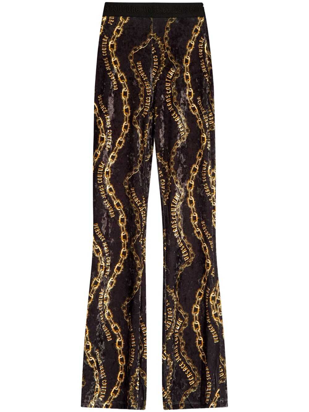 Elevate your wardrobe with the Versace Jeans Couture Trousers in sleek black. Crafted from a luxurious blend of 95% polyester and 5% elastane, these leggings offer ultimate comfort and style. Perfect for any occasion, they embody elegance and sophistication.