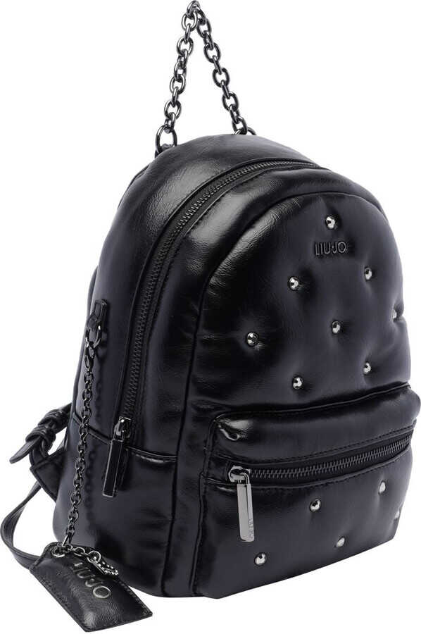 Zaino Liu Jo realizzato in ecopelle. Particolare il dettaglio con strass applicati. Presenta tasca frontale con zip, spallacci regolabili, dettaglio con charm removibile