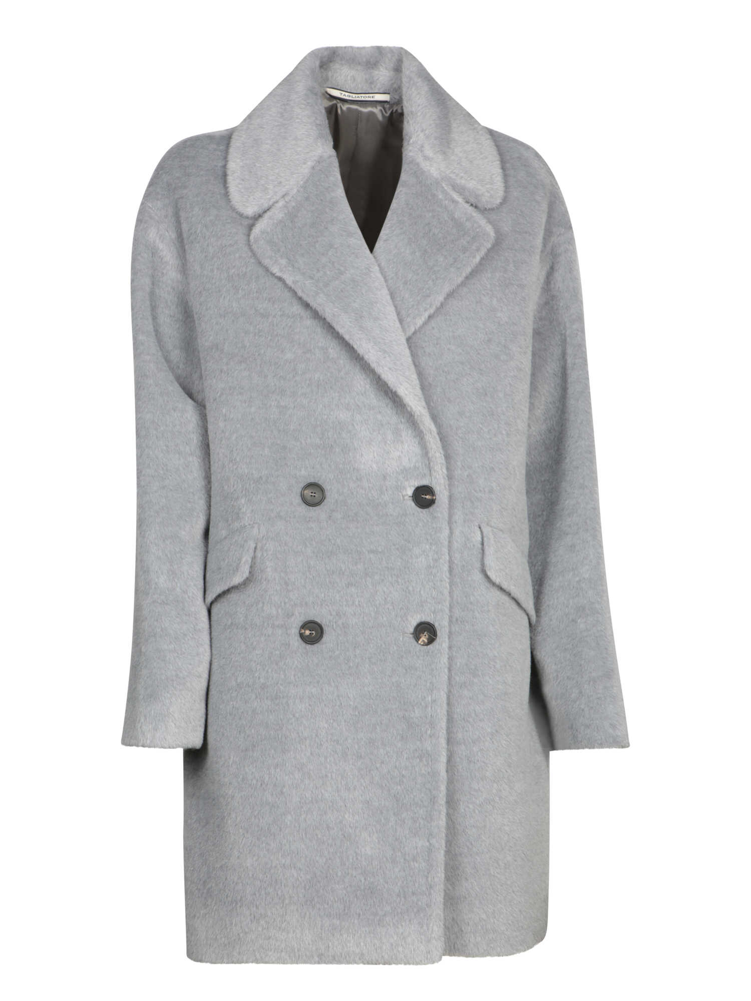 Double-breasted alpaca wool coat. Notched collar, long sleeves, and welt pockets.. This elegant coat from Tagliatore features a refined silhouette with luxurious grey alpaca wool fabric, perfect for a distinguished look during the colder months.
