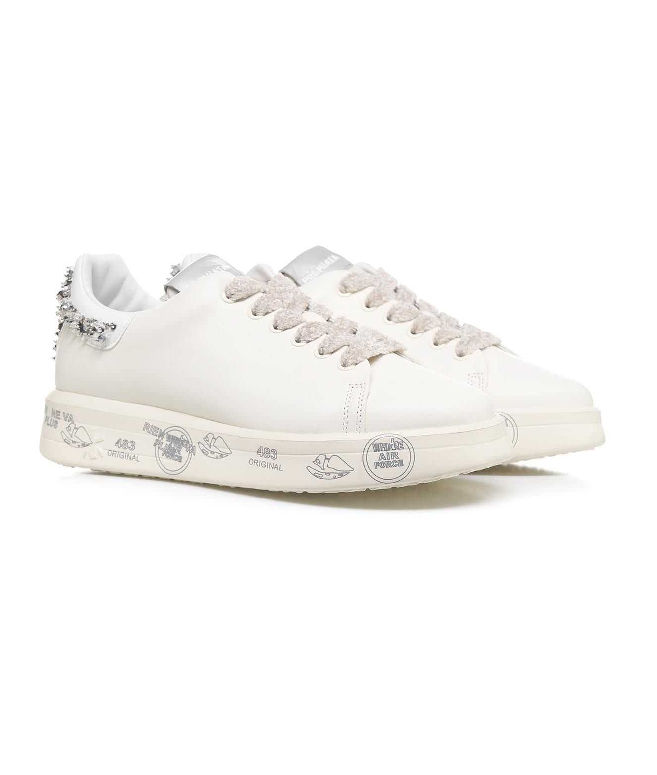 Step into elegance with the 'Belle' Sneakers by PREMIATA. Crafted from premium white leather with a durable rubber sole, these stylish shoes are perfect for any occasion. Elevate your wardrobe with comfort and sophistication in every step!