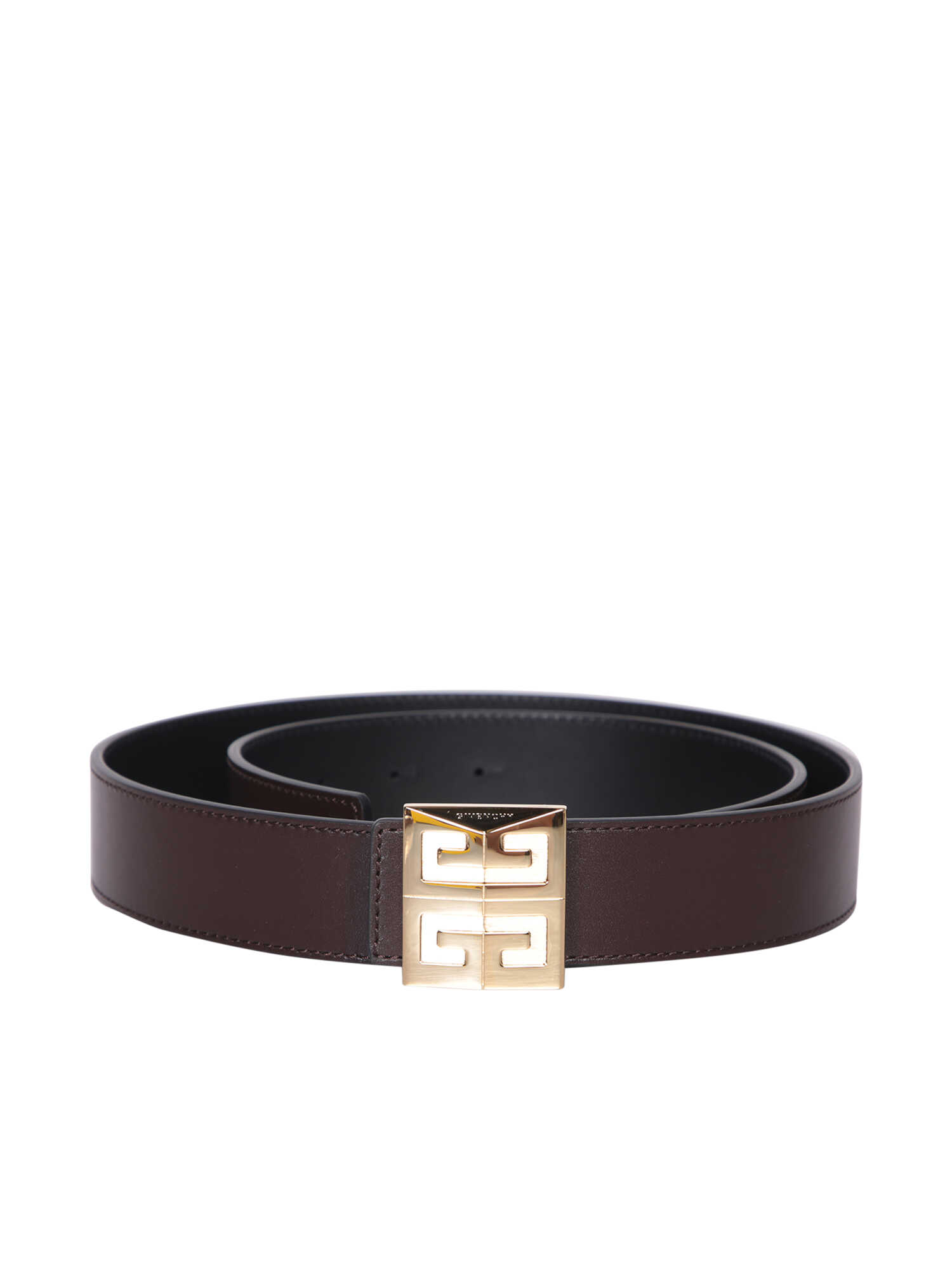 Reversible leather belt. Metal buckle with 4G logo. Adjustable.. An essential and versatile accessory, this Givenchy belt is crafted from high-quality leather with a distinctive gold-toned 4G logo buckle, offering two stylish color options to complement any outfit.