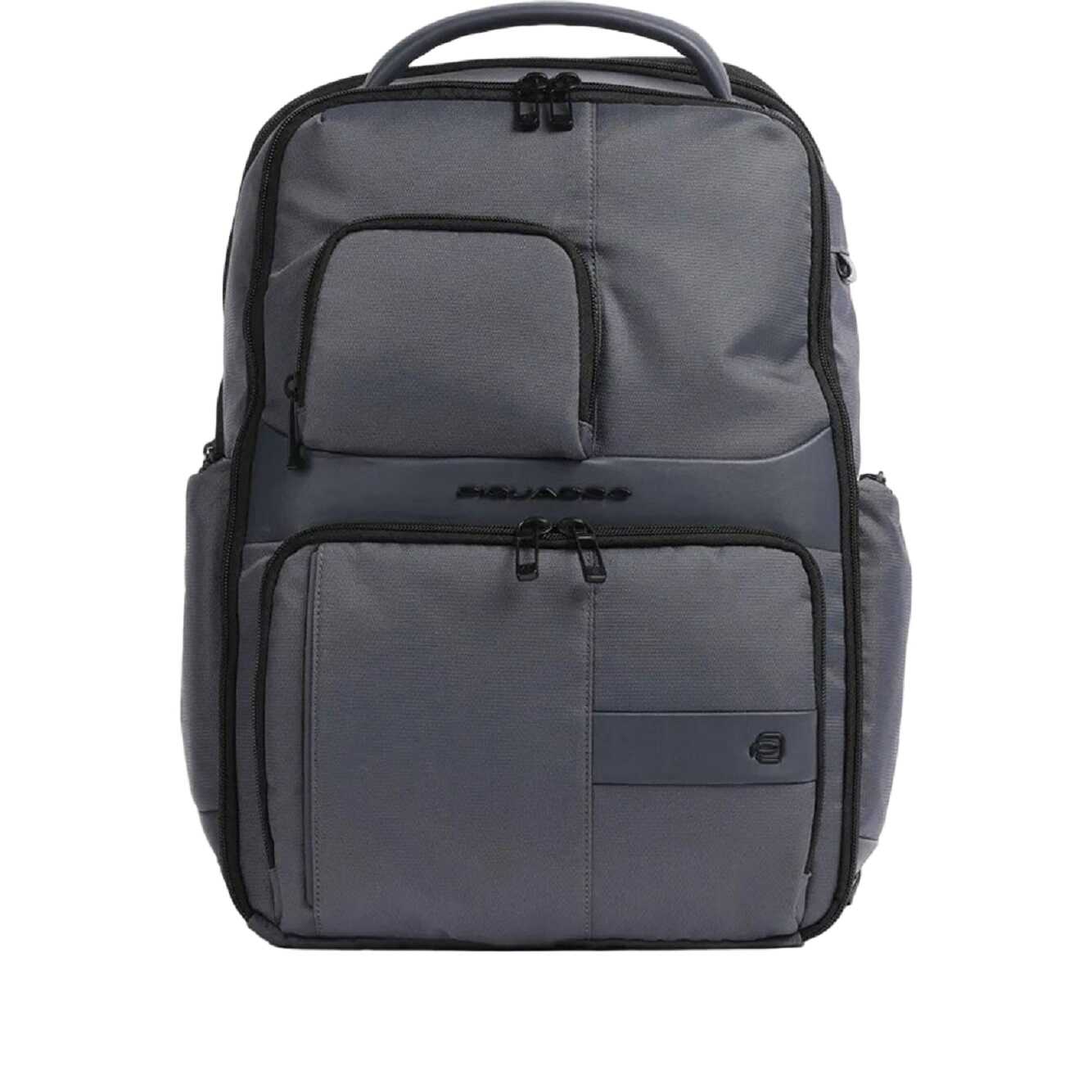 Description The Piquadro backpack can carry both 15.6" PCs and iPads. It is made of recycled fabric and leather, with glasses holder and shockproof protection. Measurements: 34x42x18 cm (wxhxd) Material: fabric and leather Closure: zip Can contain: 15.6" notebook Shock Absorber Ipad holder pocket Number of compartments: 2 Weight: 1171 gr