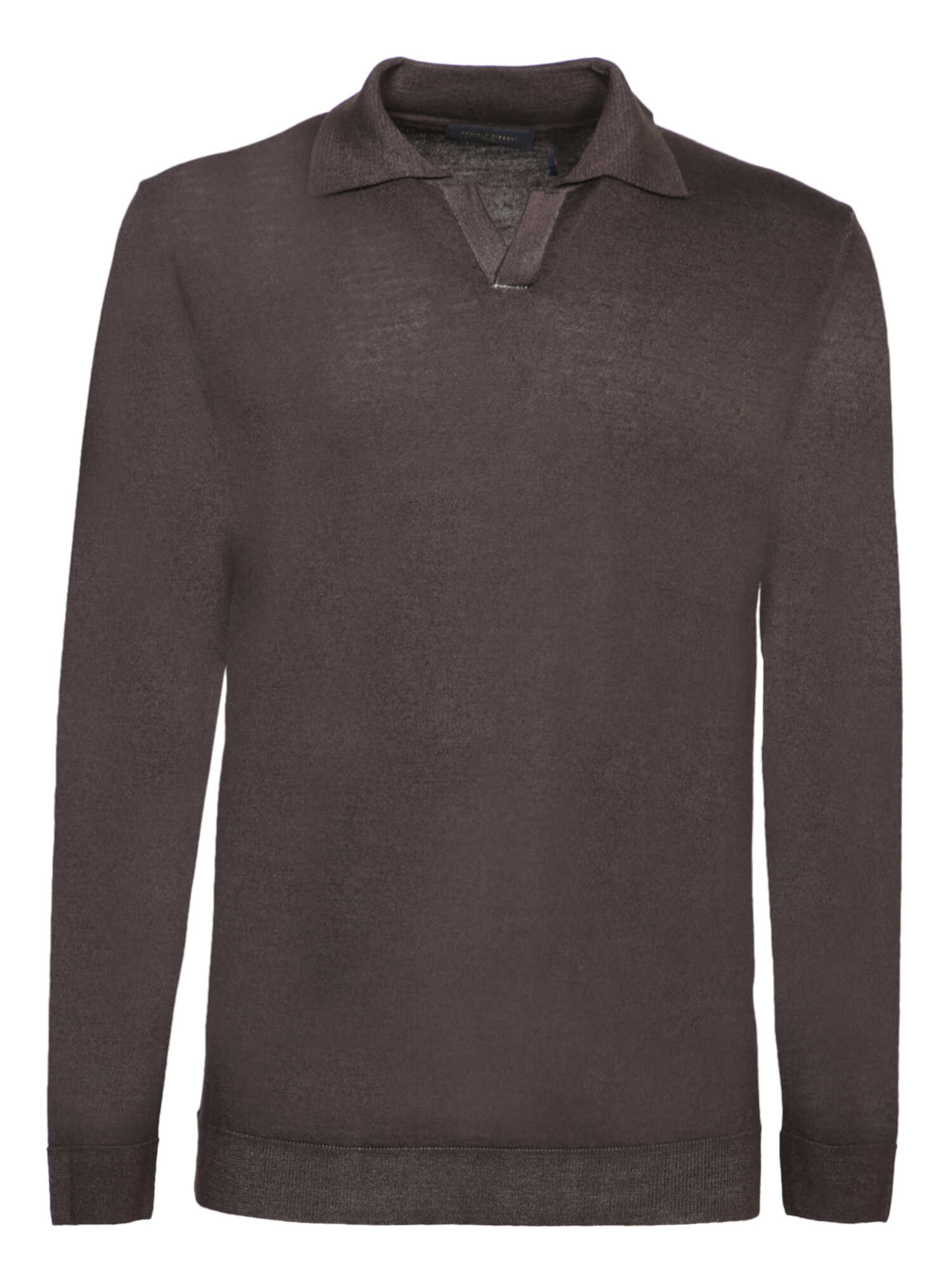 Long-sleeved polo. Classic collar. Ribbed trims.. A timeless and versatile piece perfect for the fall season, crafted in soft dark brown merino wool with a classic polo collar.