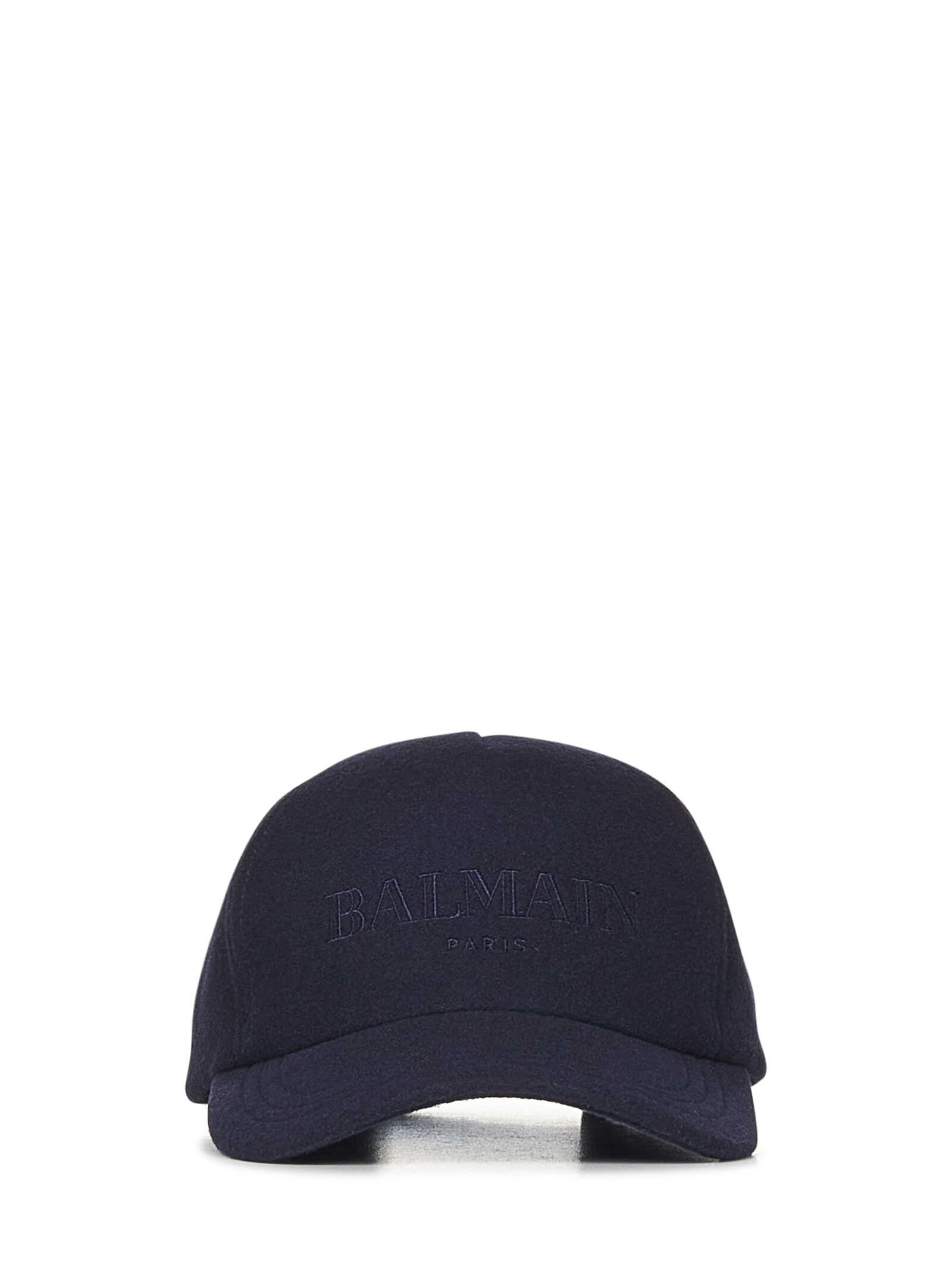 Navy blue wool blend felt baseball cap with embroidered Vintage logo.
