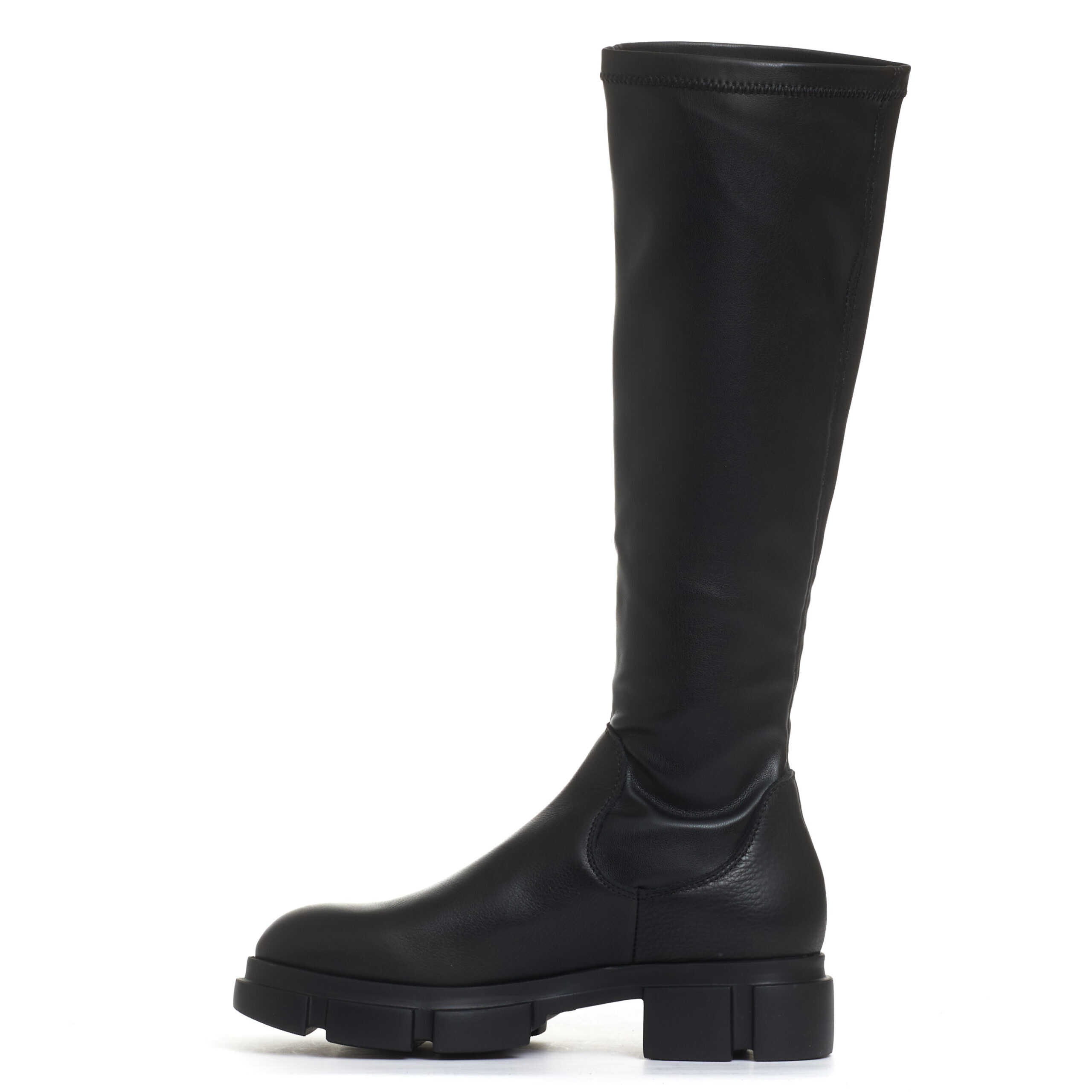 ecopelle elasticizzata altezza gamba sotto al ginocchiofondo in gommacolore nero