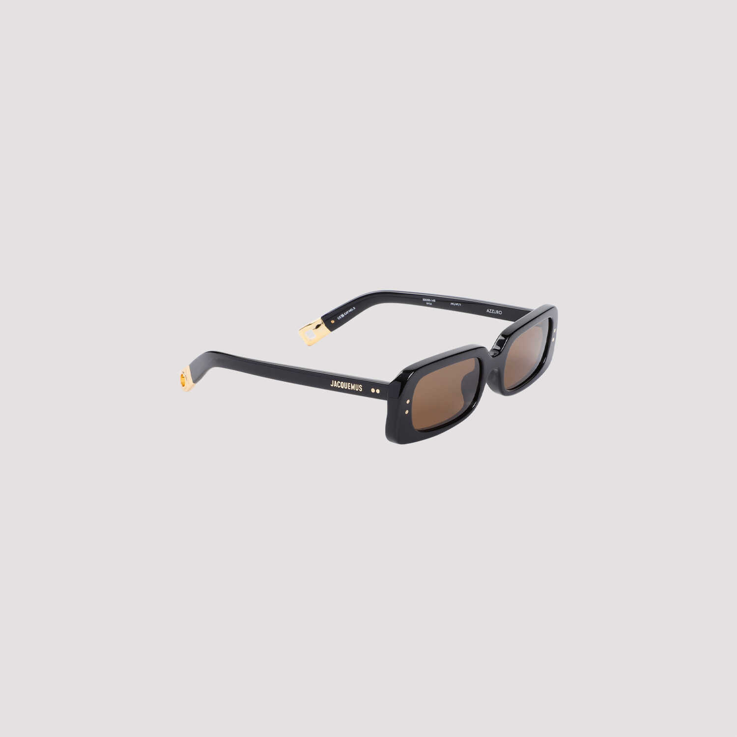 Elevate your style with these chic and sophisticated Jacquemus JAC47C1SUN sunglasses. Crafted from high-quality black acetate, these sunglasses feature a modern squared frame and brown lenses for a sleek look. The golden-tone logo on the temples adds a touch of luxury, while the stainless steel tips ensure durability. Perfect for any fashion-forward woman, these sunglasses are a must-have accessory for the season.