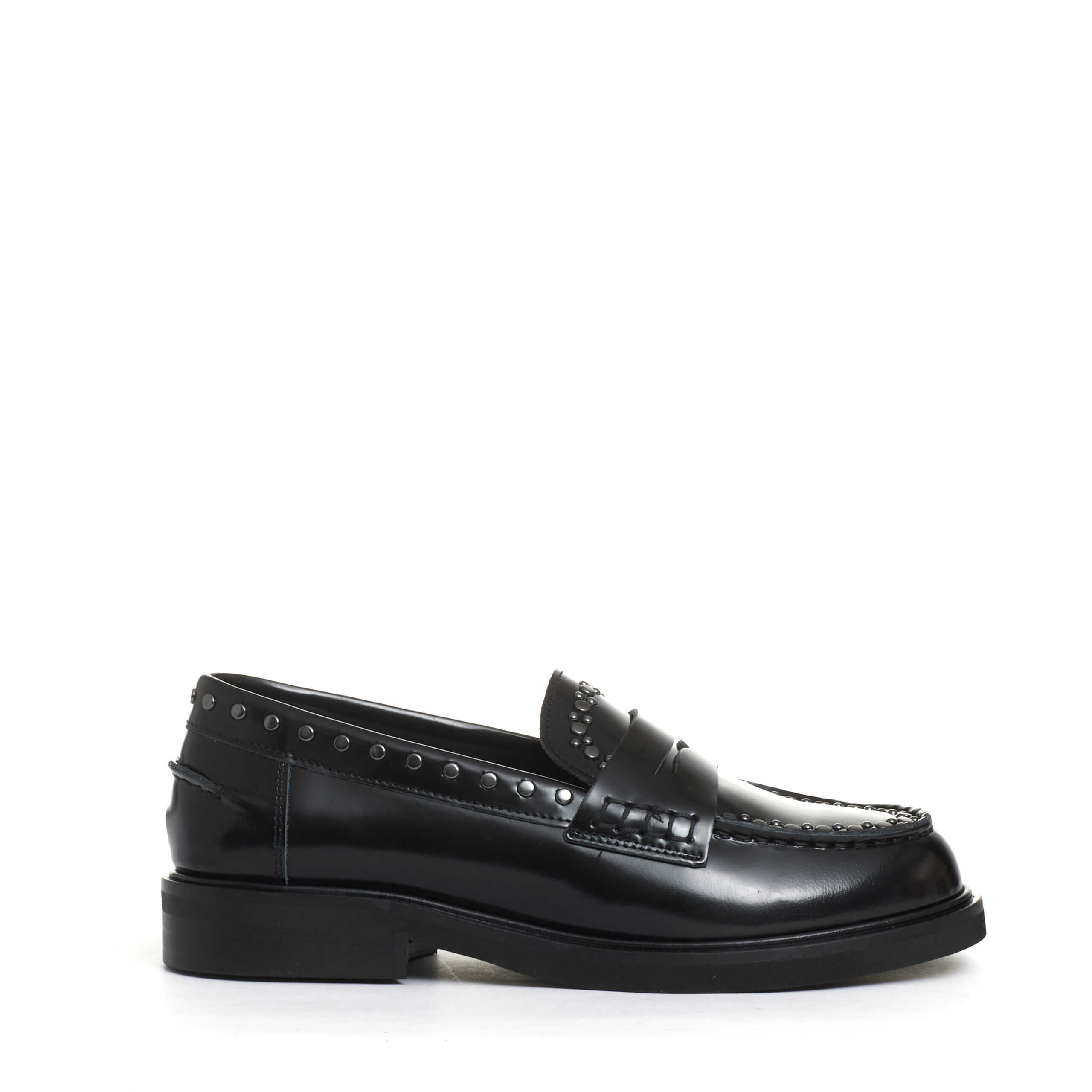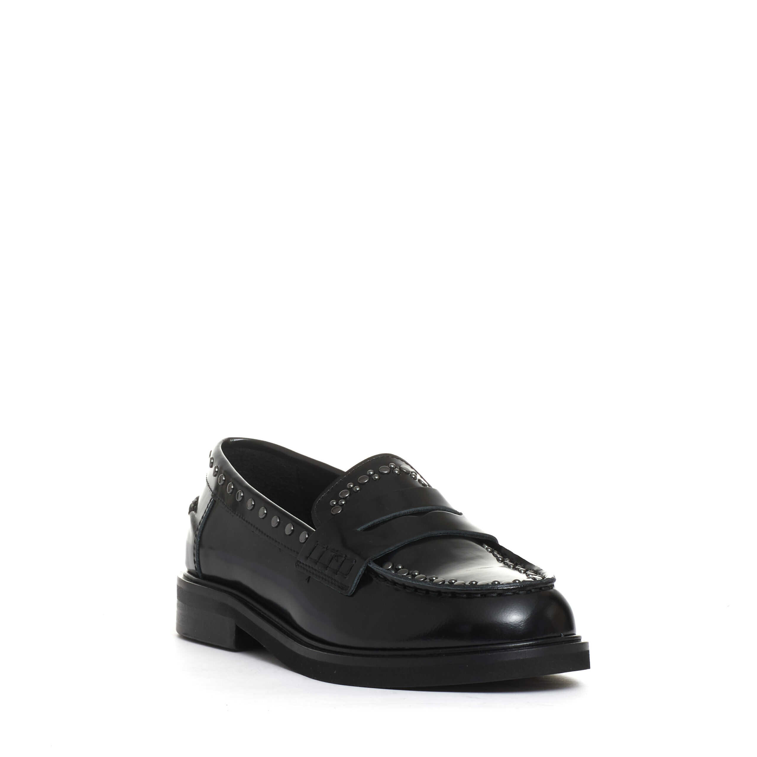 mocassinopelle nera abrasivataborchie nere antracitefondo in gomma