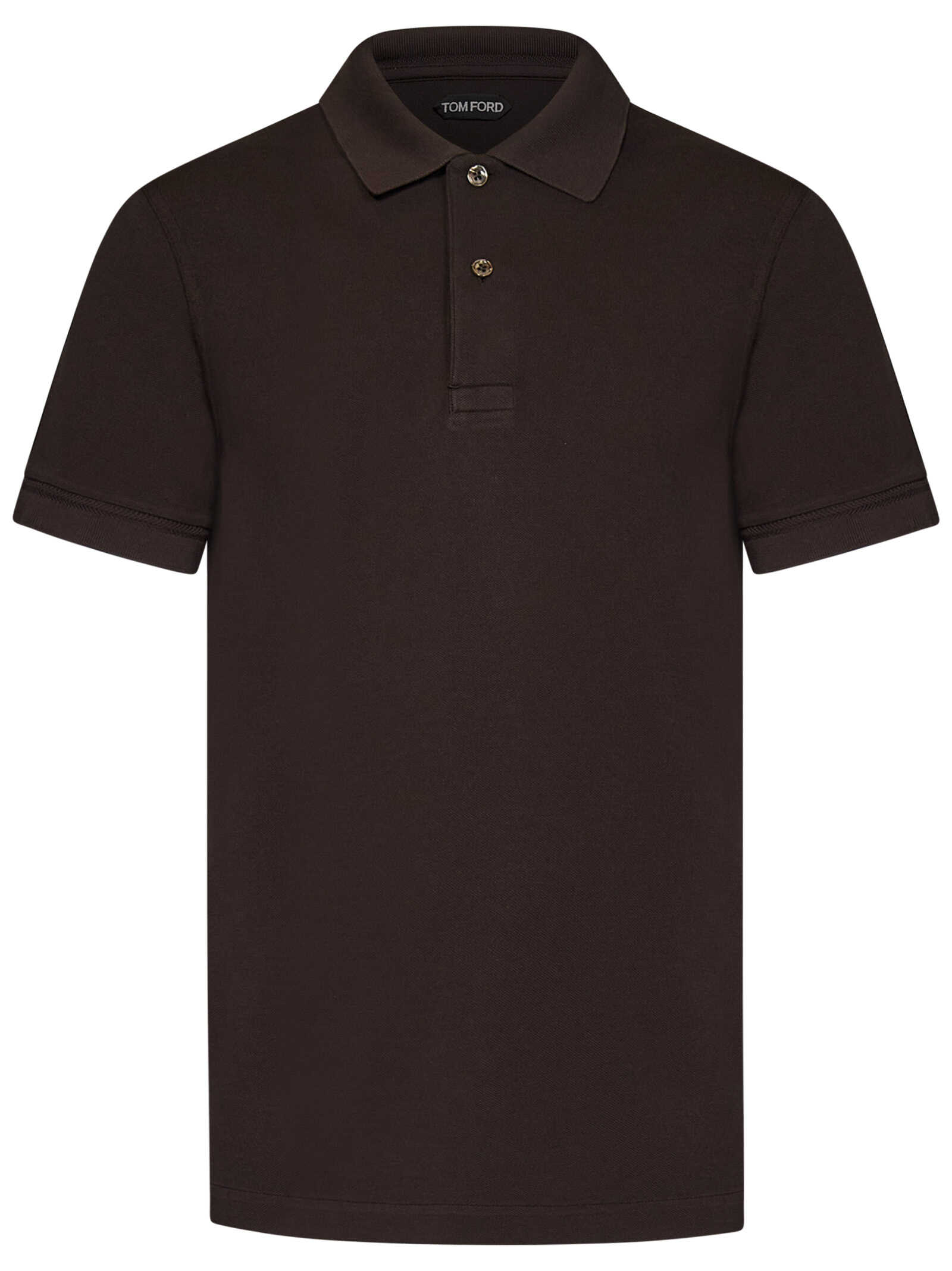 Classic brown cotton piquet short-sleeved tennis polo shirt with logo.