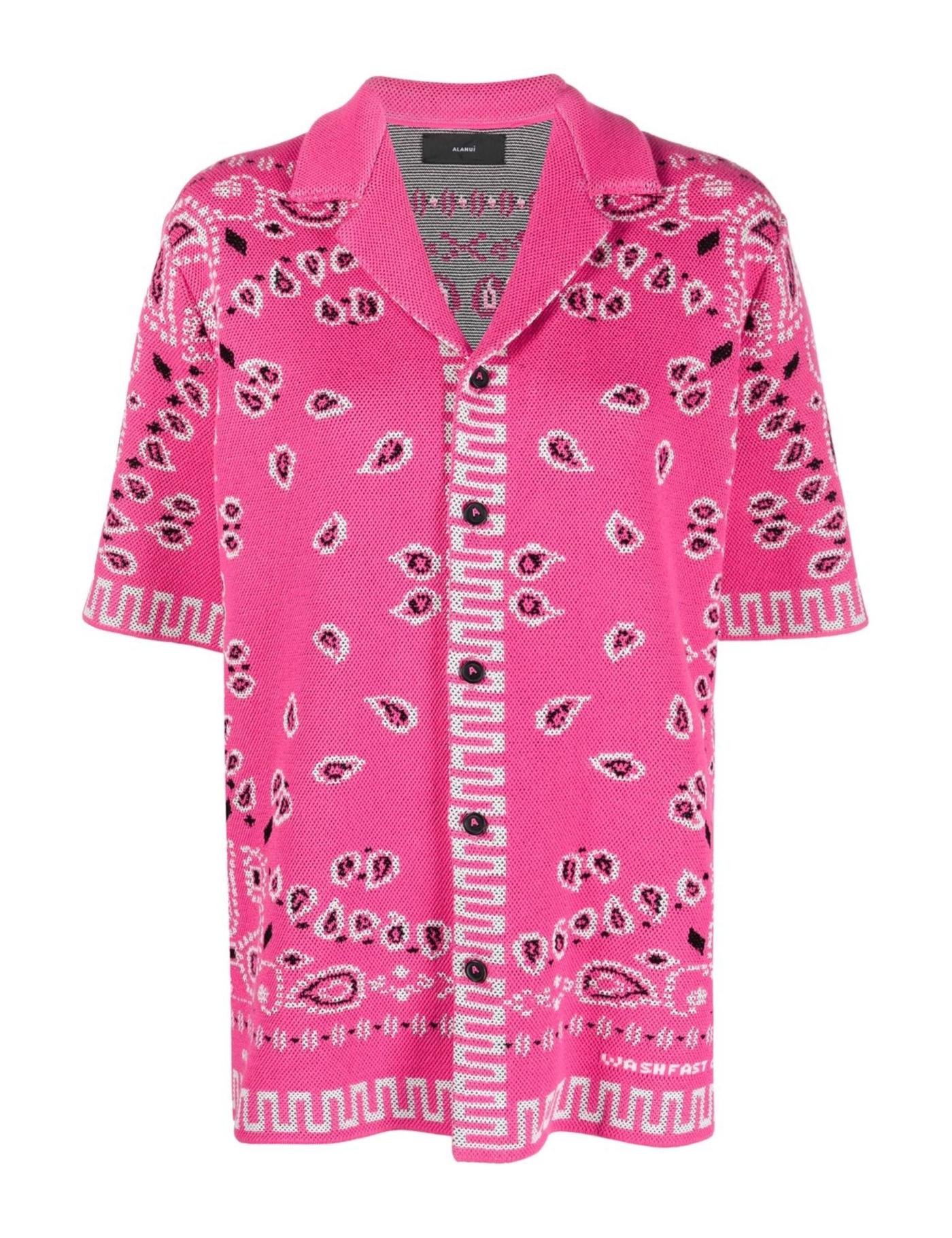 - magenta/jet black cotton paisley print spread collar front button fastening short sleeves