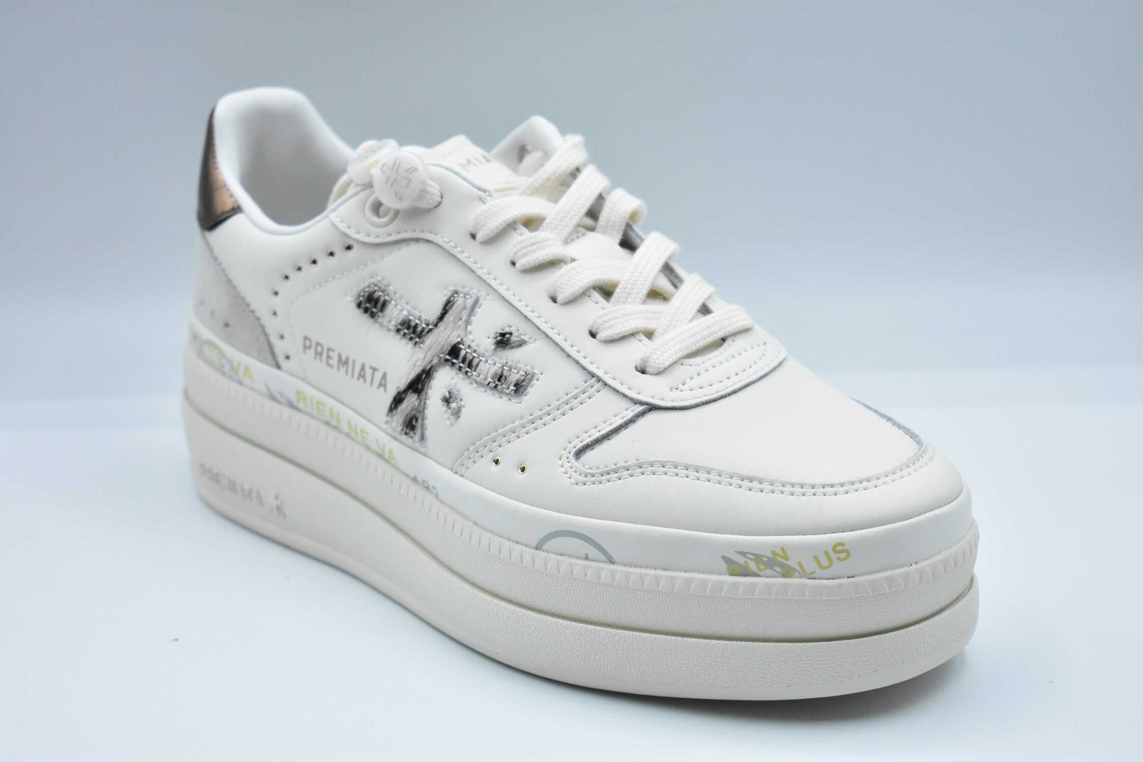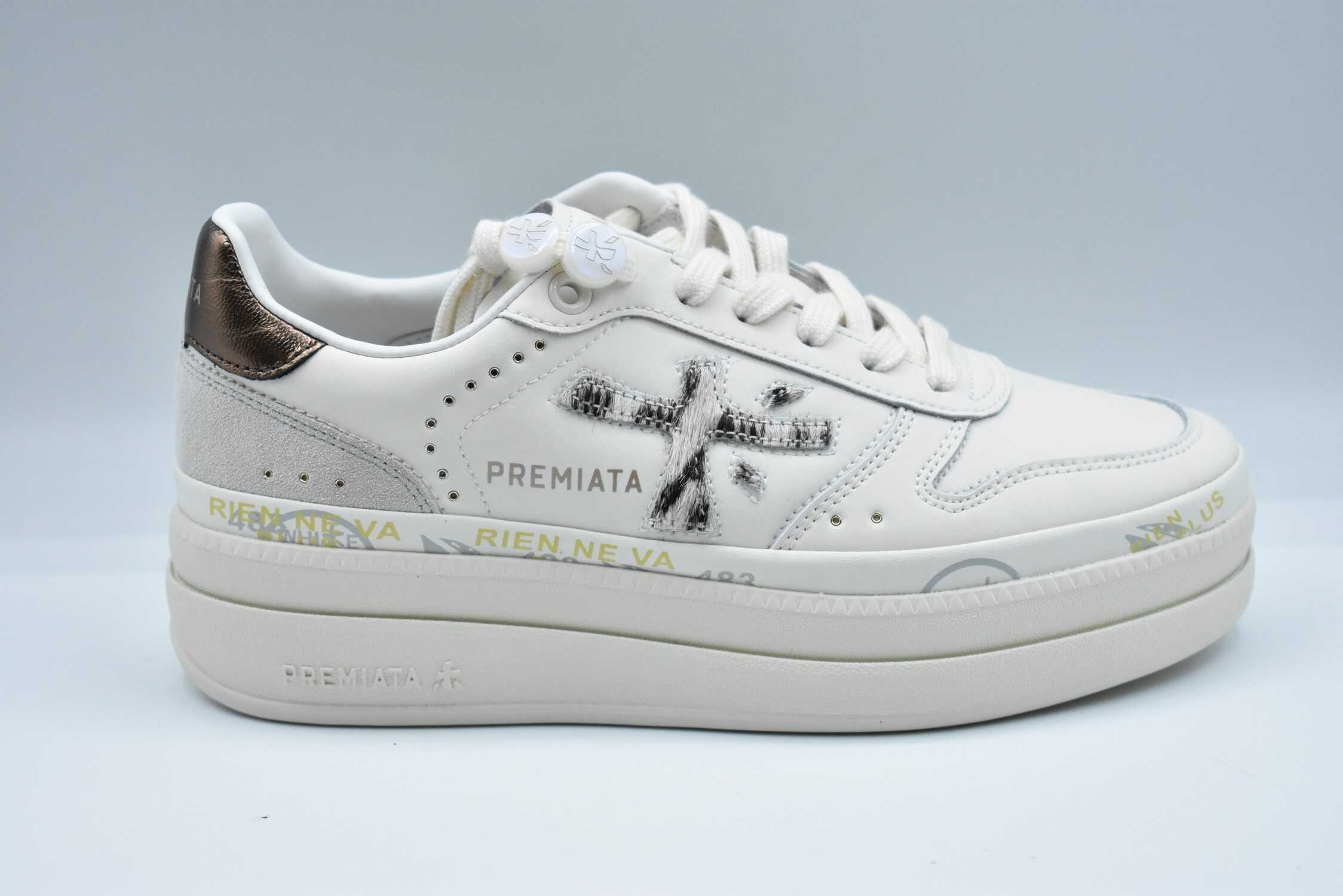 Step into elegance with the PREMIATA Flat Shoes in a sophisticated cream shade. Perfectly crafted for comfort and style, these laced shoes elevate any outfit. Experience luxury and versatility with every step you take in these stunning footwear.