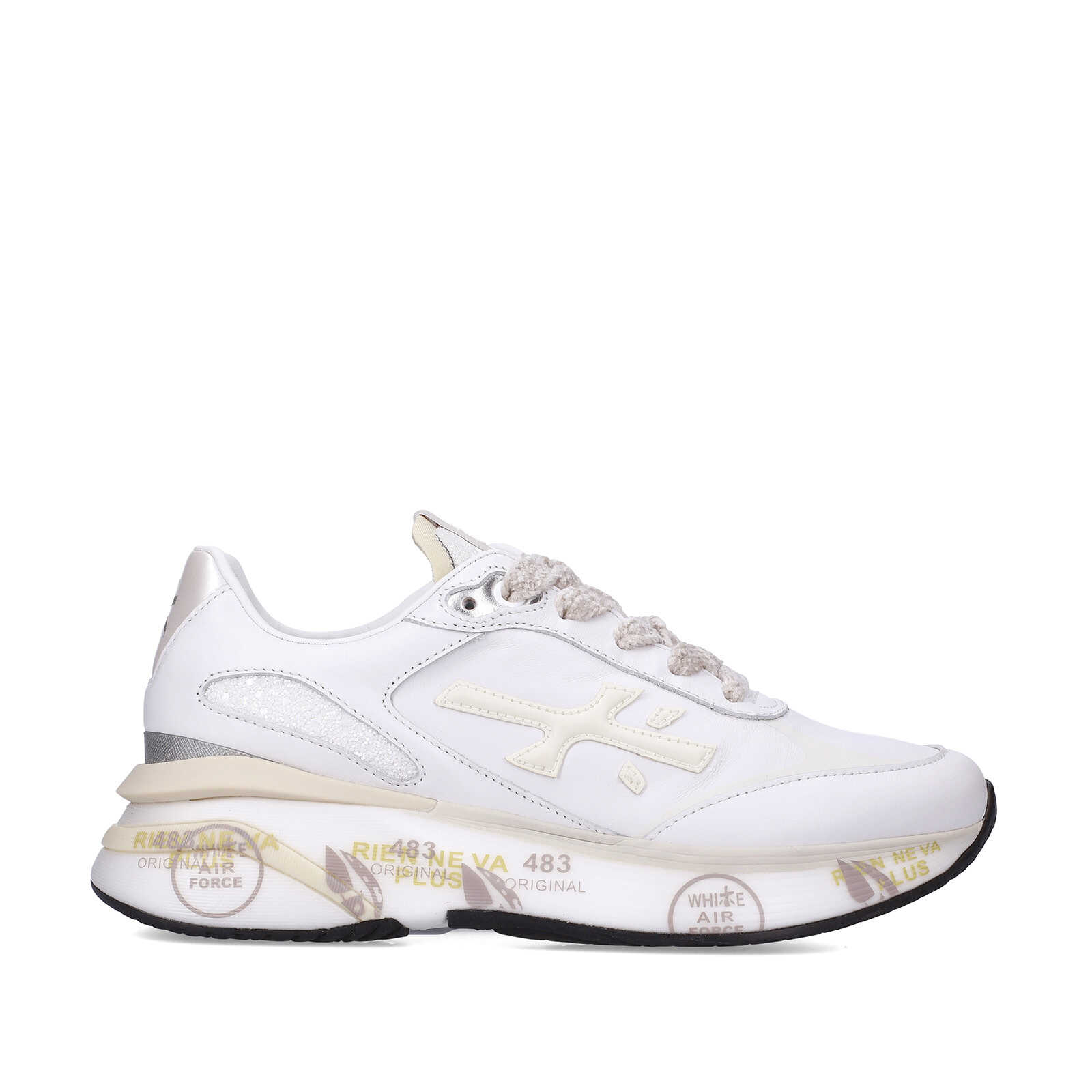 Step into style with the Moerund Sneakers by PREMIATA. Crafted from premium leather and technical fabric, these white sneakers feature dazzling sequin details and a chunky sole for comfort and support. Elevate your wardrobe with this chic footwear!