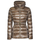 Claudia slim fit taupe ultralight nylon down jacket with belt at the waist and high eco-fur collar.