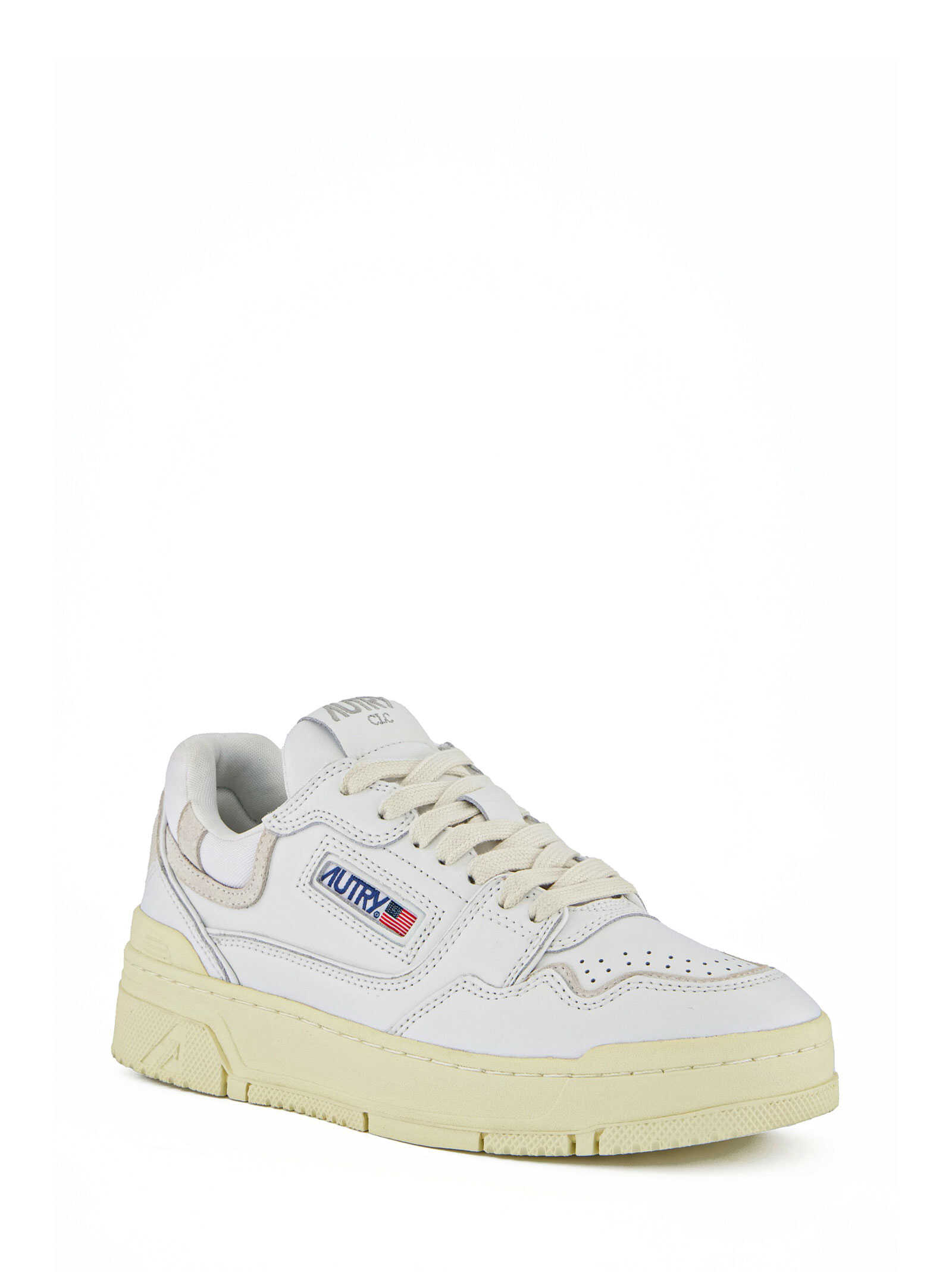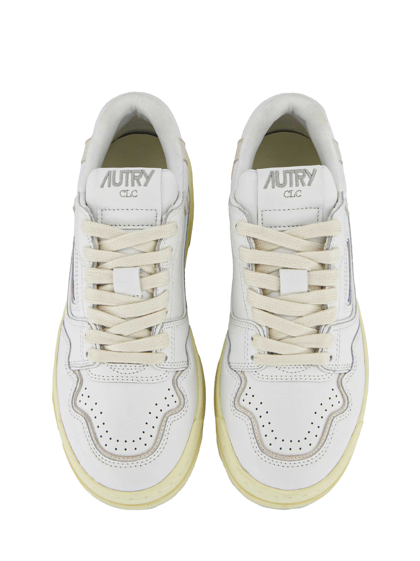 CLC sneakers in white leather with suede inserts and ivory-colored rubber sole.