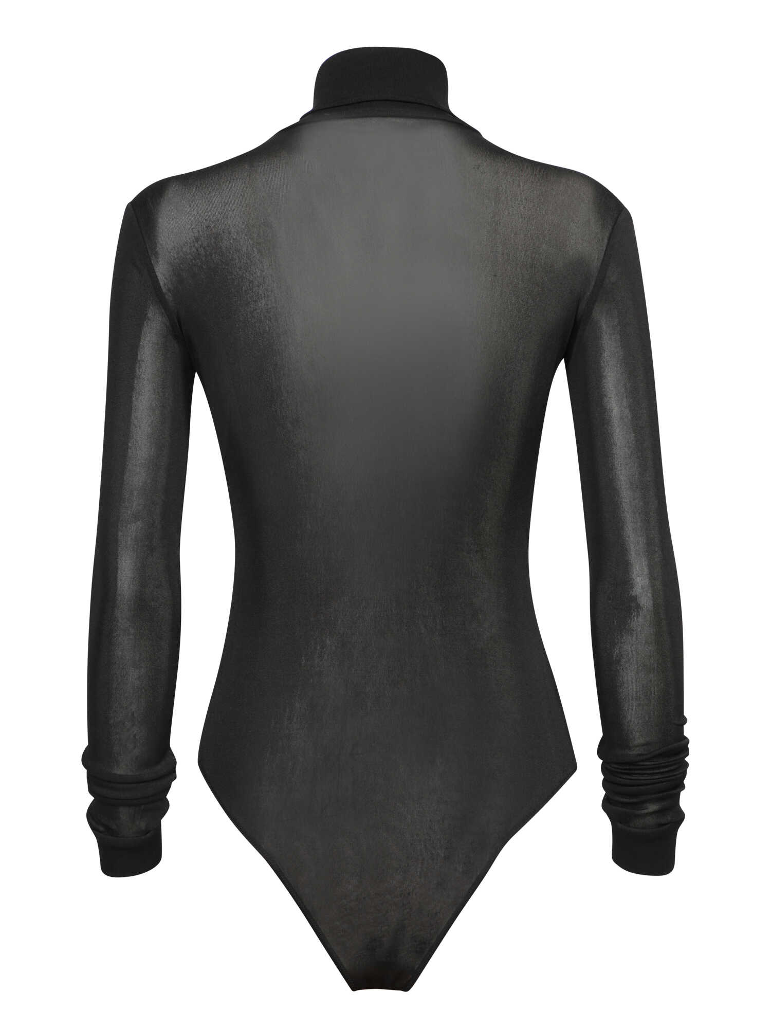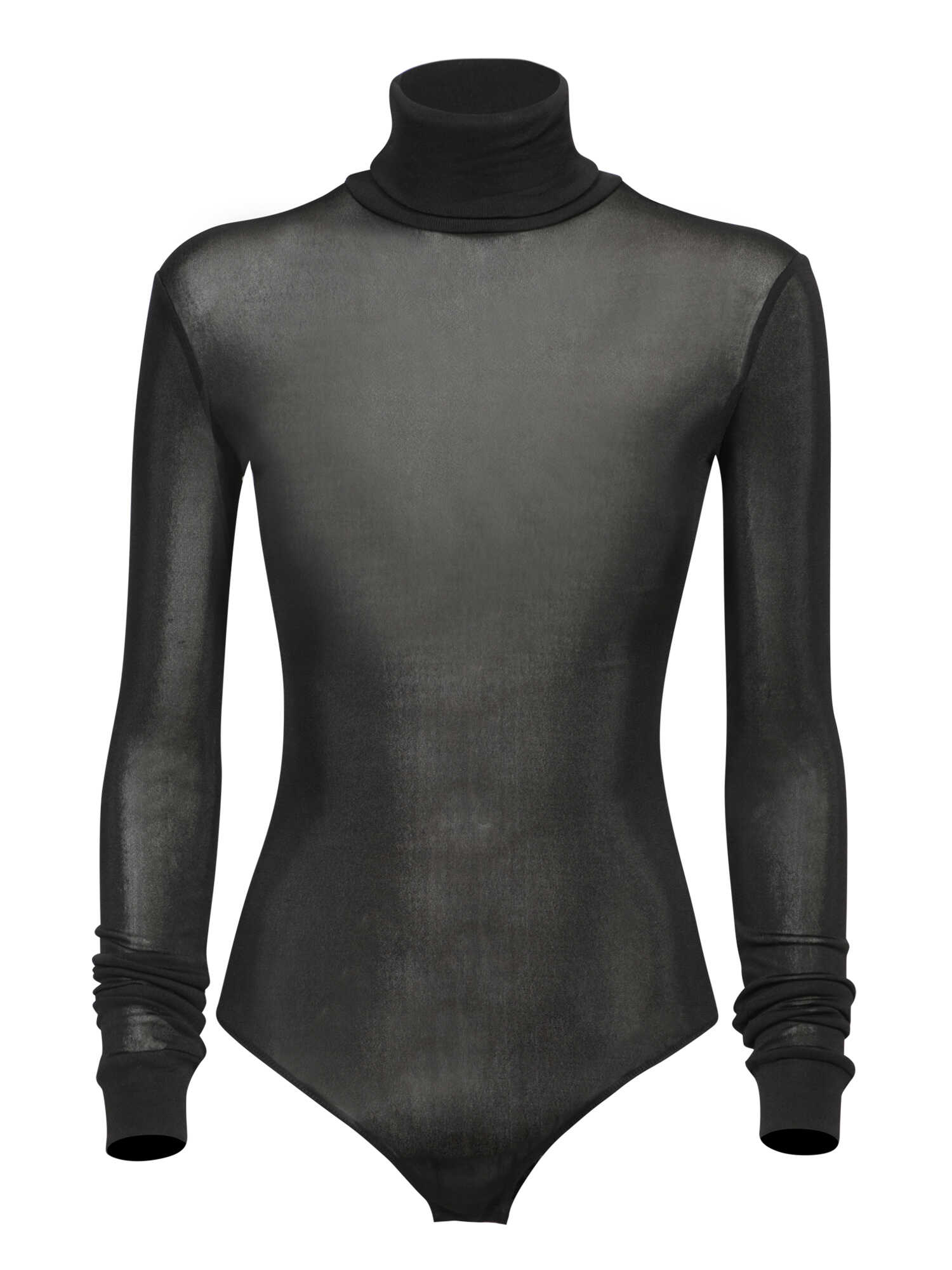 Elevate your evening style with the MAISON MARGIELA Black Sweater. This luxurious bodysuit features a high-neck design and pleated sleeves, crafted from stretch fabric for a flattering fit. Perfect for making a sophisticated statement.