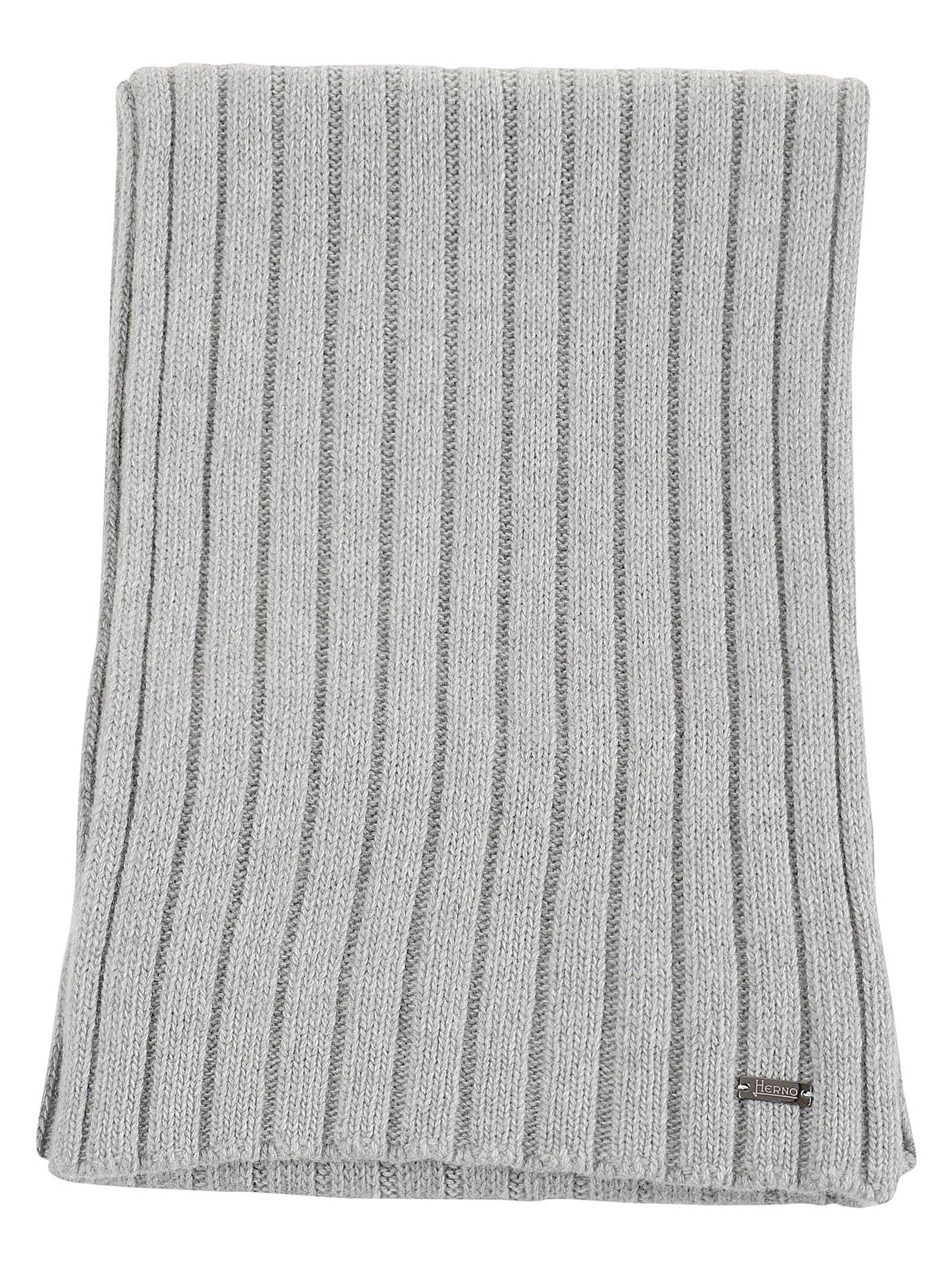 Stay warm and stylish with this luxurious grey wool scarf from Herno. Expertly crafted with ribbed details and featuring the iconic Herno logo in metal, this scarf is the perfect accessory to elevate your winter wardrobe. Made from 100% wool, this scarf is not only cozy but also incredibly soft to the touch. Add a touch of sophistication to any outfit with the HERNO SCP0002UR.70219 scarf.