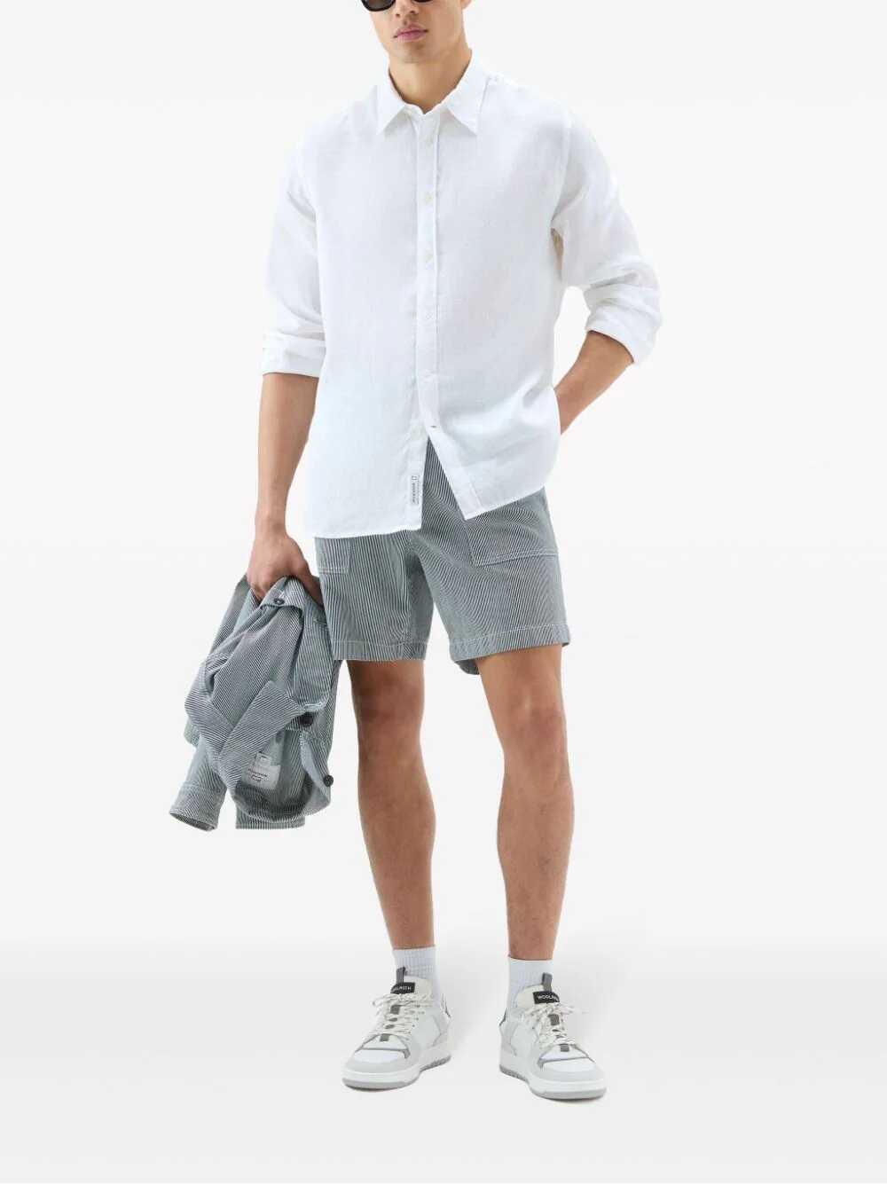 Elevate your style with this Beige Linen Shirt from WOOLRICH. Perfect for any occasion, this shirt combines comfort and sophistication. Made with high quality linen fabric, it offers a relaxed fit and timeless design. Add this versatile piece to your wardrobe today!