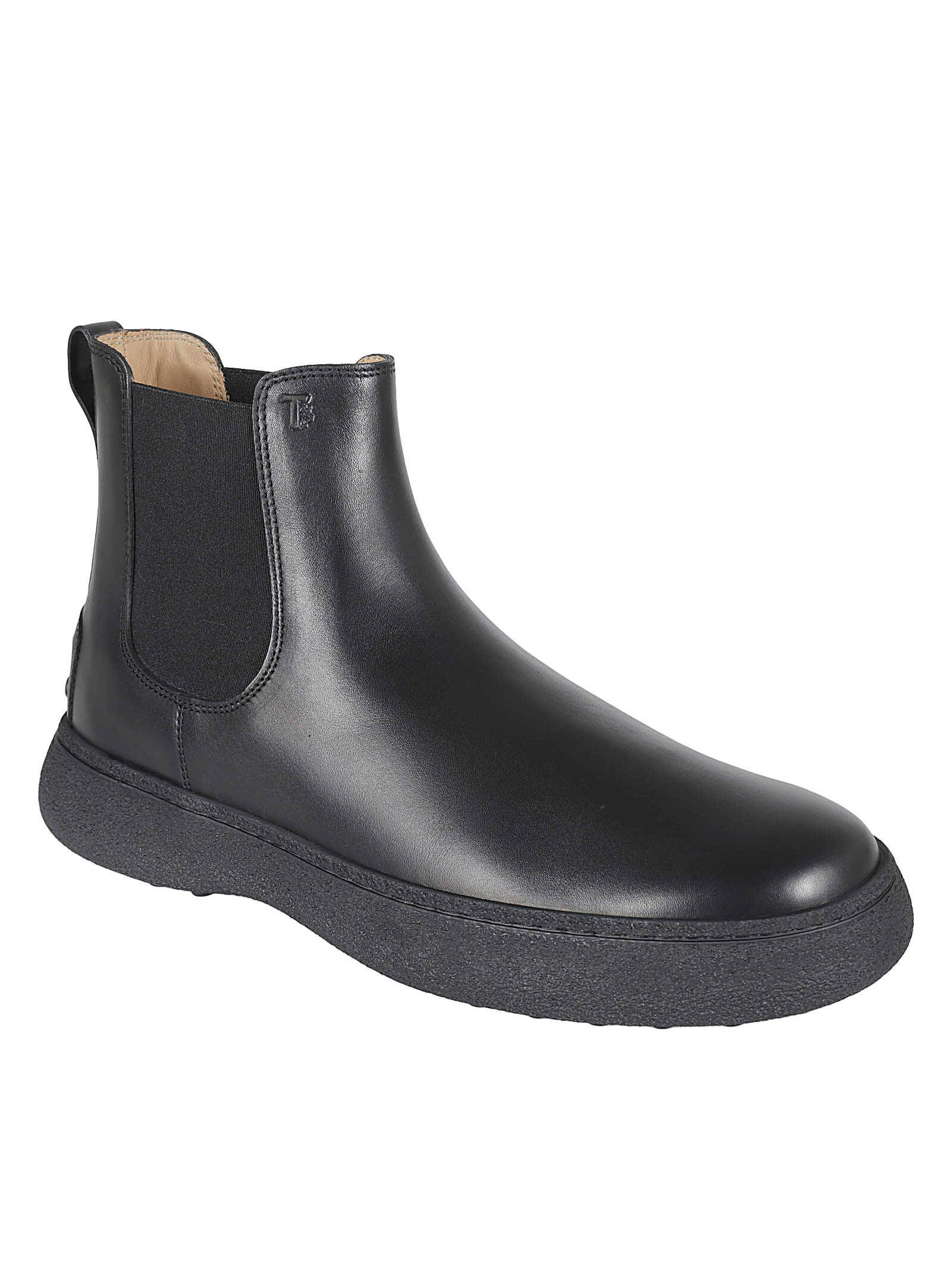 black calf leather smooth grain debossed logo to the side round toe embossed logo to the rear elasticated side panels pull-tab at the heel branded leather insole rubber sole