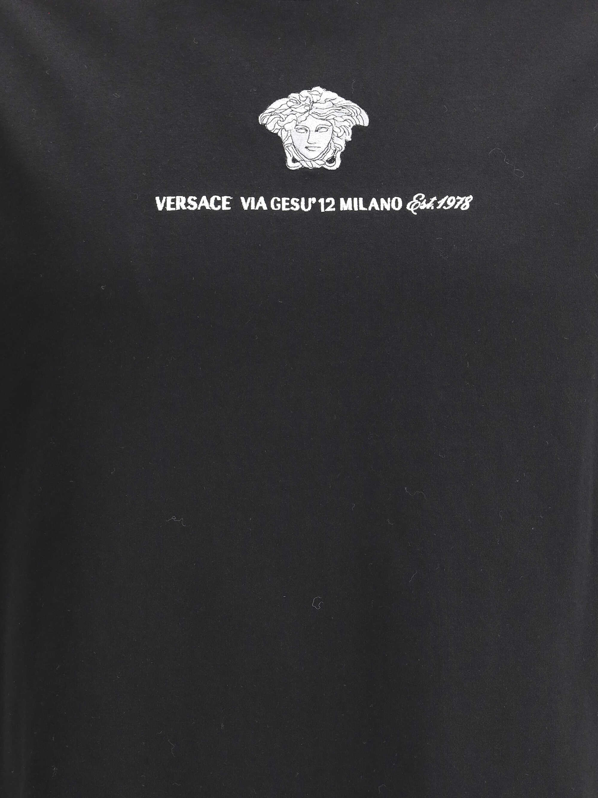 Cotton T-Shirt by Versace, ribbed crew neck, contrasting iconic brand monogram on front, monochrome pattern, regular fit.