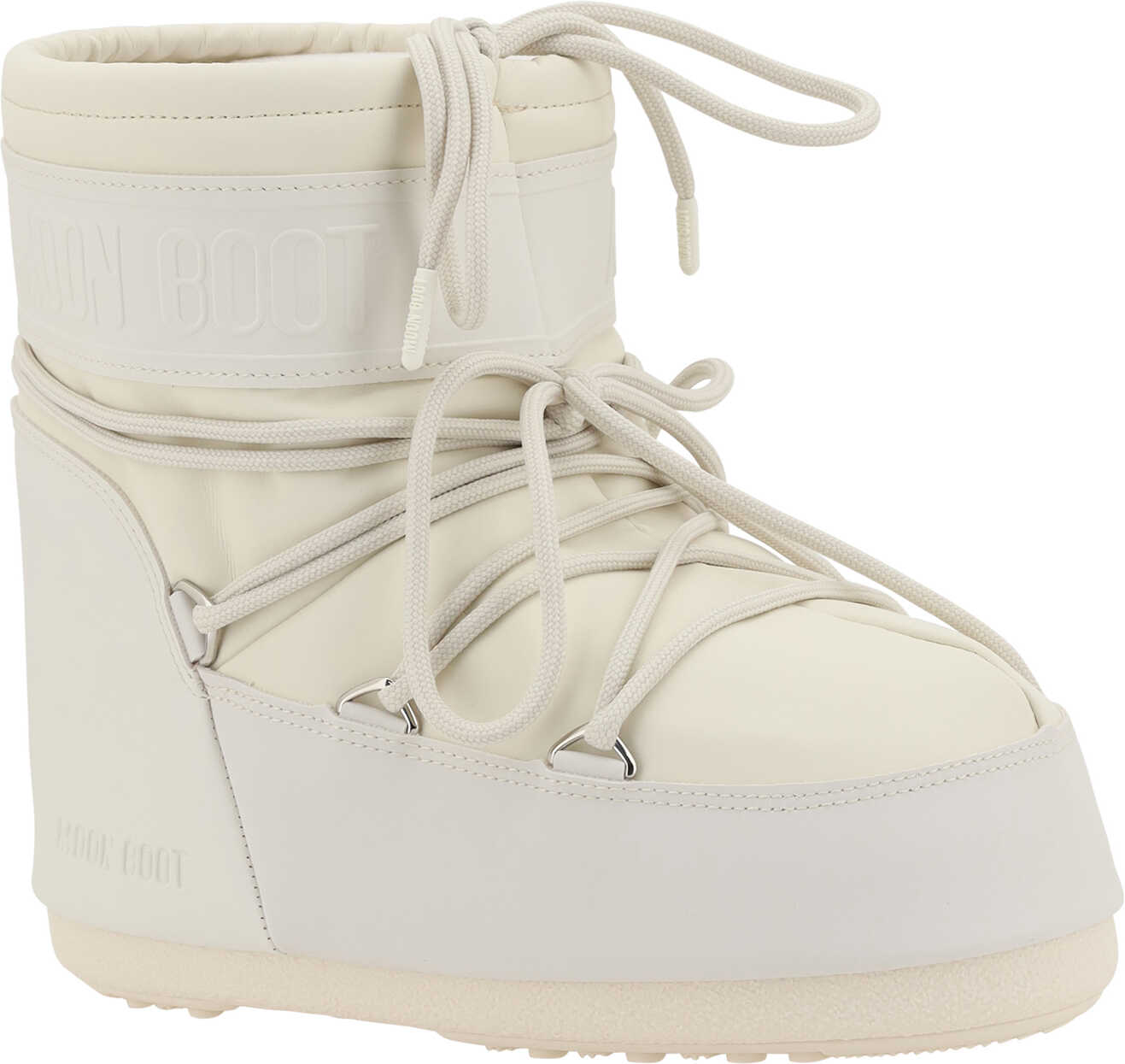 Moon Boot's Icon Low Rubber Boots represent a modern and functional take on the house's classic design. With all-over padding, they offer warmth and comfort without sacrificing distinctive style. The ankle-length model features the brand's iconic monogram printed in contrast on the shaft, adding a recognizable detail with character. The front lace-up closure allows for a customized fit, while the platform sole gives a contemporary feel and added stability.