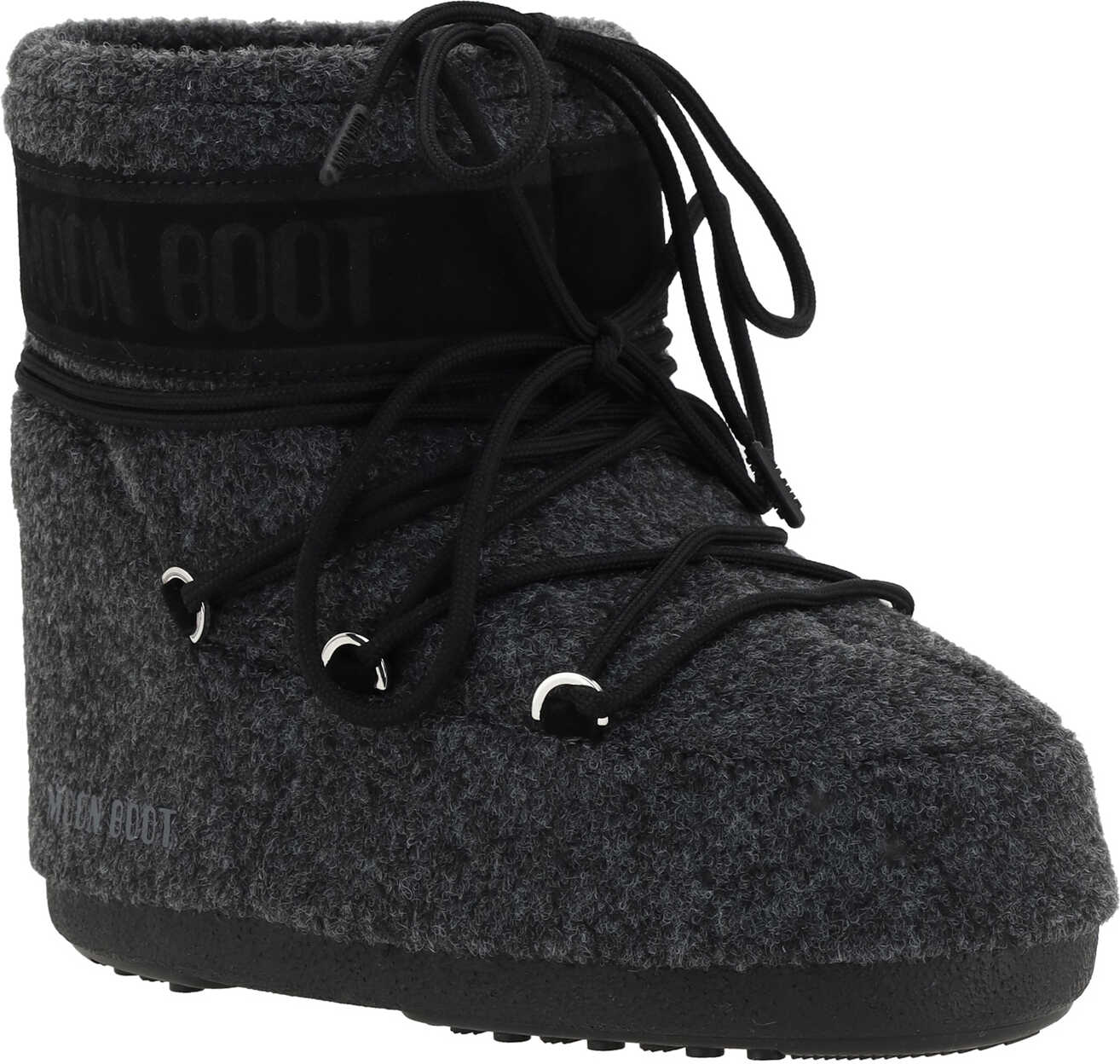 Icon Low Felt Boots by Moon Boot, above-ankle model, all-over padded felt design, iconic brand monogram printed in contrast on the shaft, front laces for closure, platform sole.
