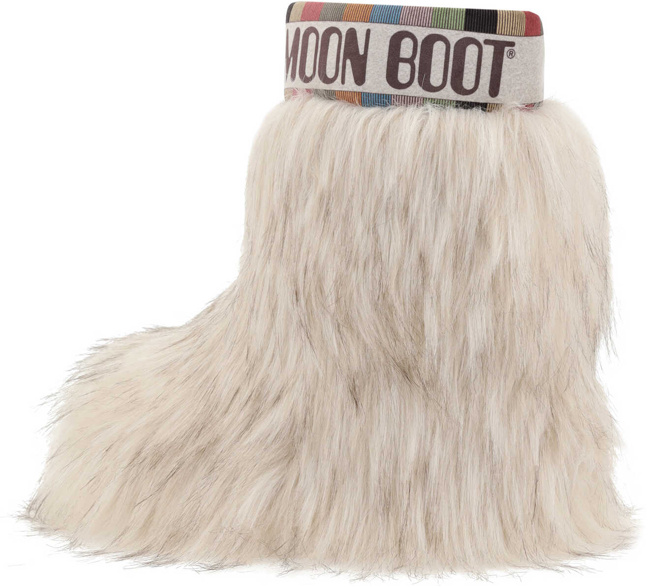 Icon Yeti Mid Boots by Moon Boot, all-over faux fur applique, iconic brand monogram printed in contrast on the shaft, platform sole.
