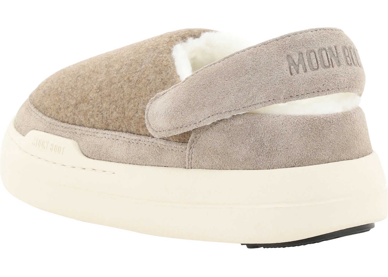 Moon Boot's Mules combine comfort and bold style in a unique design. Featuring a round toe and non-slip textured sole, they feature suede details and a warm, wrap-around shearling interior. The slingback style at the back is embellished with the brand's iconic printed monogram for a distinctive touch. Perfect for those looking for footwear with an original and comfortable character.