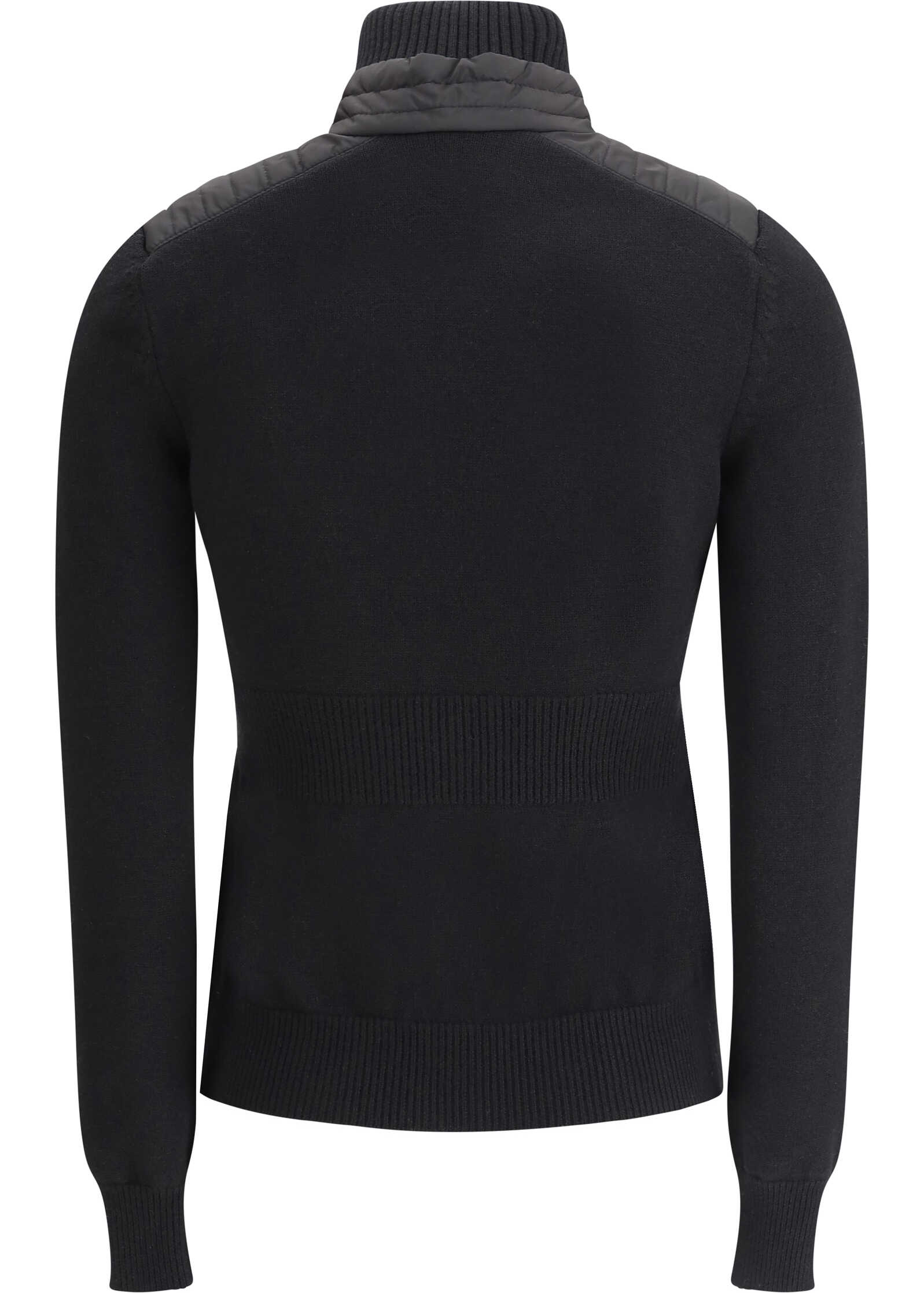 Wool Jacket by Moncler Grenoble, front closure by double-slider zipper and snaps, ribbed high collar, quilted and padded down front panel, ribbed cuffs, iconic brand logo patch sewn on left sleeve, fitted fit.