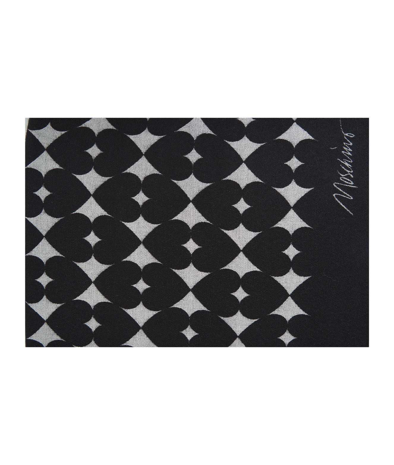 Stay stylish with this elegant black scarf from MOSCHINO. Made from a luxurious blend of wool and cotton, this scarf features a heart motif design. Perfect for adding a touch of sophistication to any outfit. Dry clean recommended. Dimensions: 185 x 70 cm.