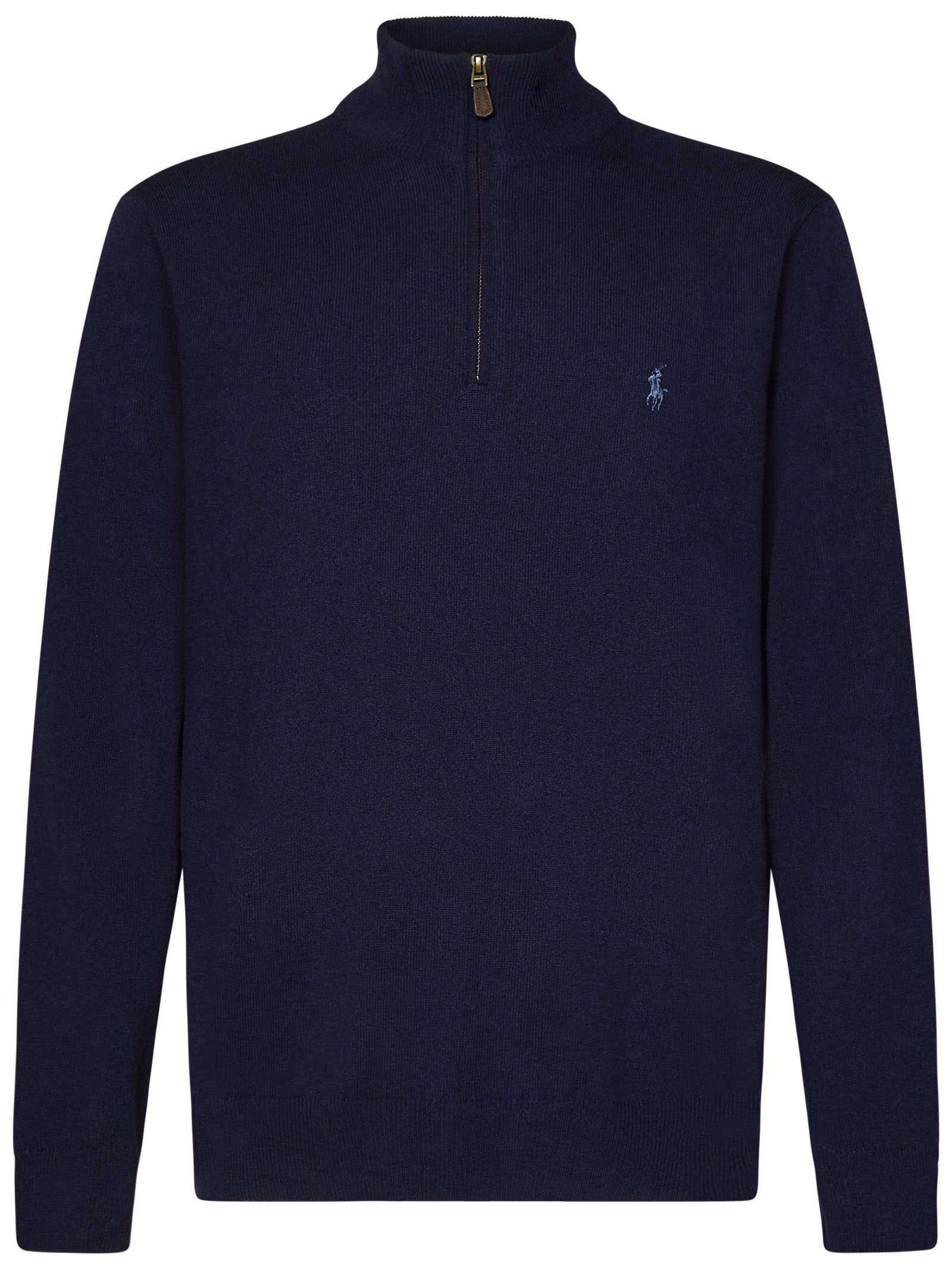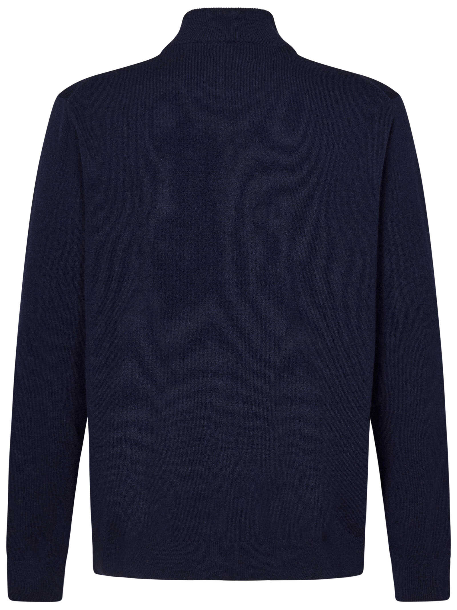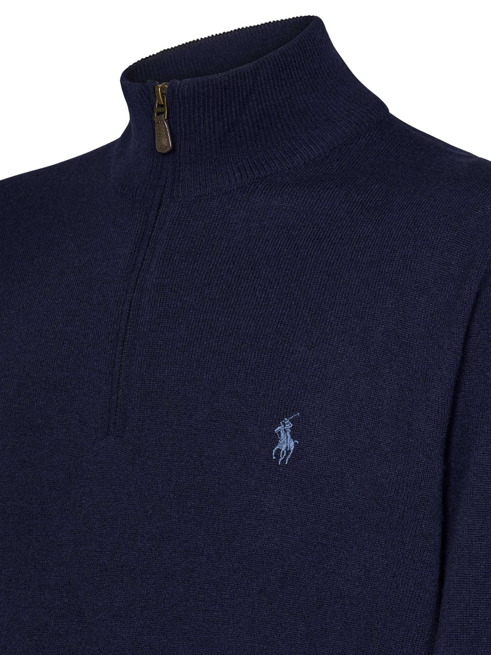 Hunter navy wool knit quarter-zip mockneck jumper with Pony embroidery.