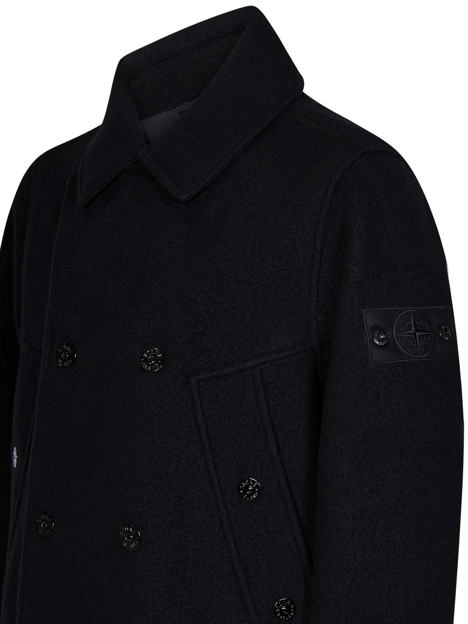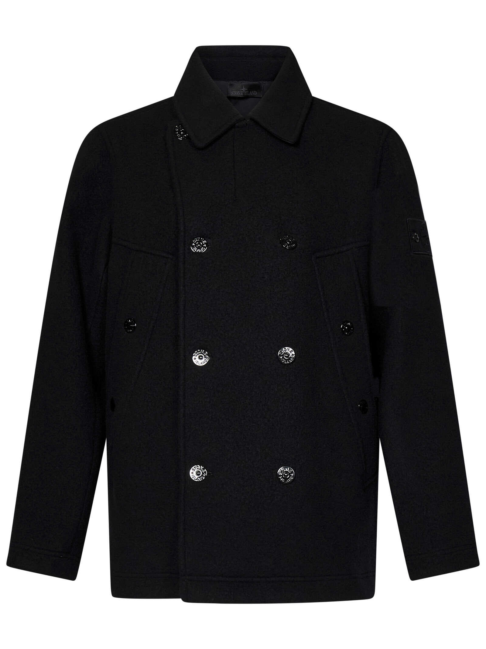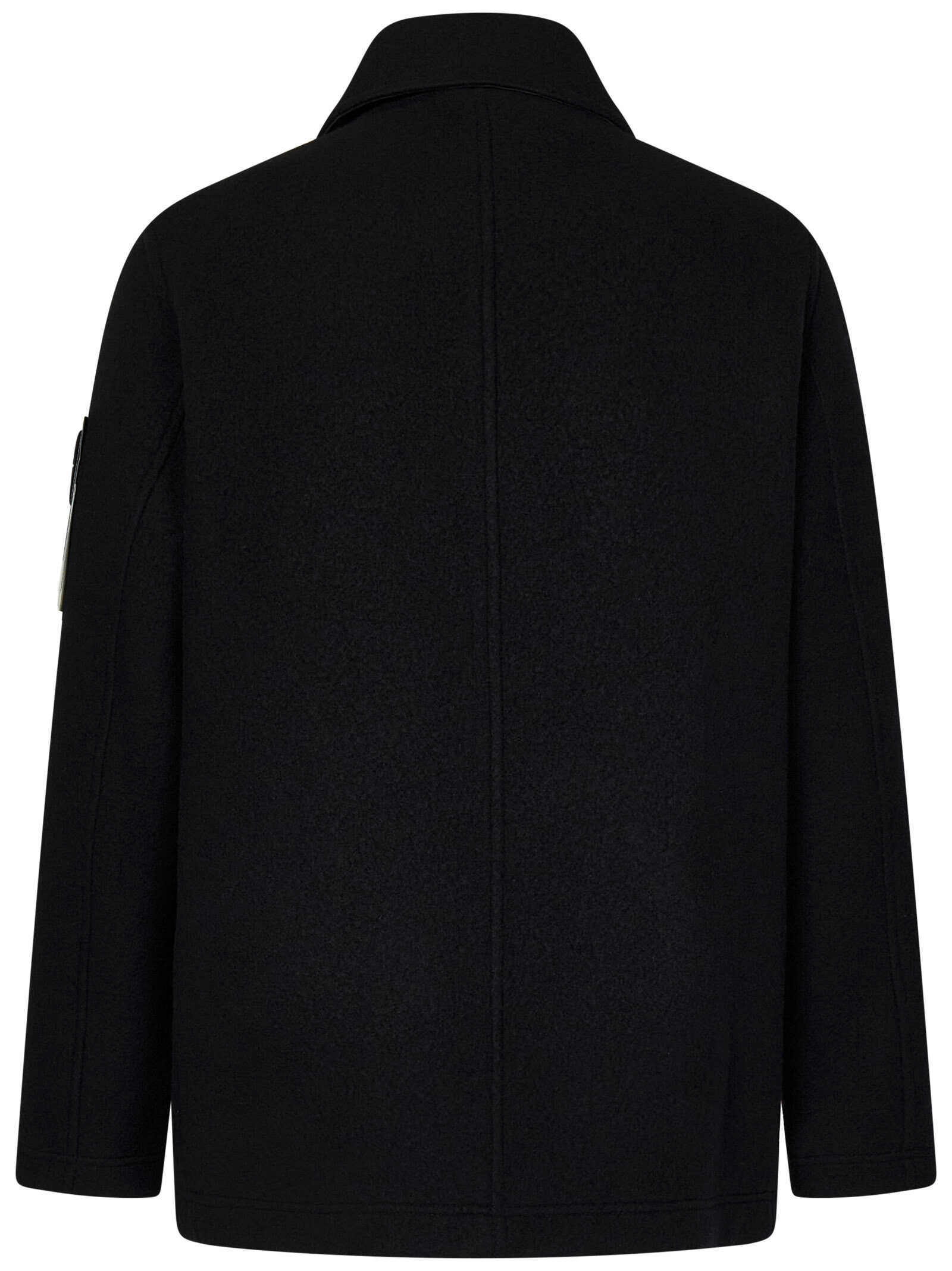 Short black coat in wool and cashmere cloth with tone-on-tone logo badge on the left sleeve.